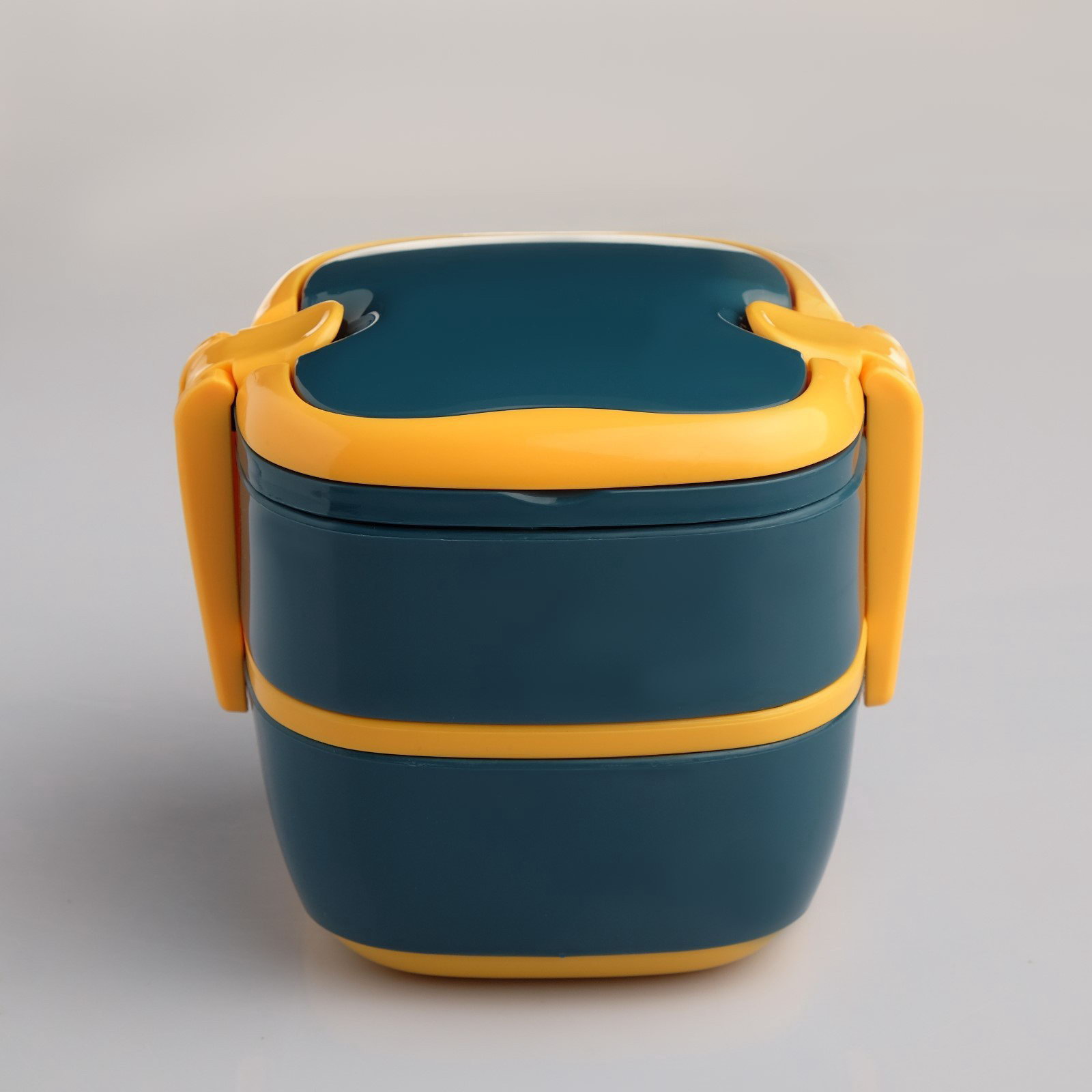 Ланч-бокс в школу 800 мл, с приборами, 2 уровня, 17x14.5x14 см, пластик, синий, 14.5x17x14 см., TAKE IT EASY, Китай
