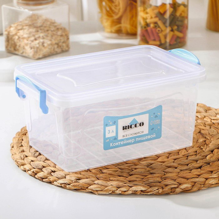 Контейнер пищевой, 3 л, 28x16x12 см, пластик, прямоугольный, прозрачный, ручки МИКС, 16x28x12 см., RICCO, Россия