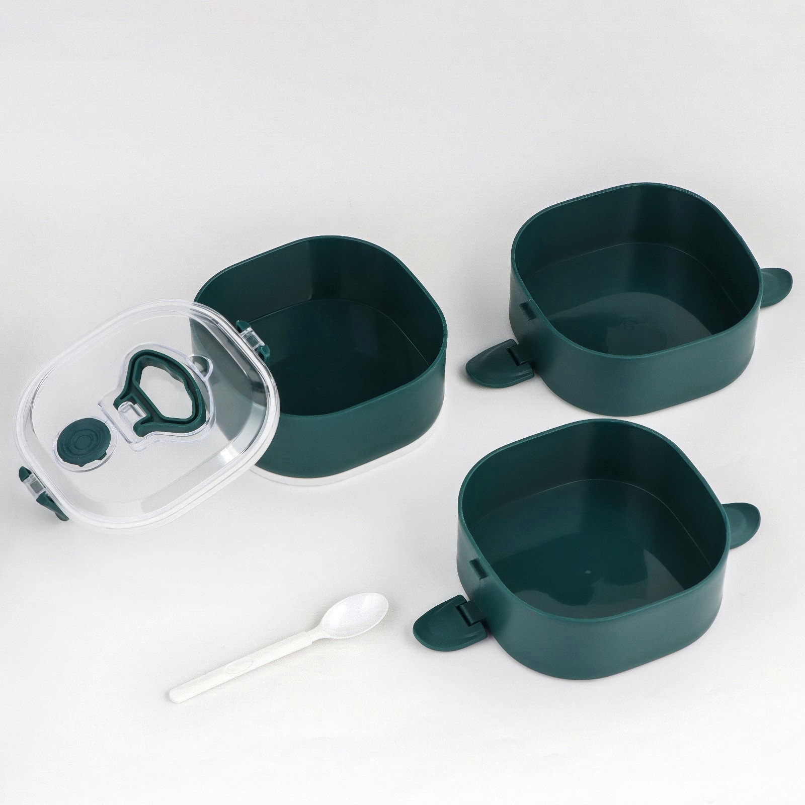 Ланч-бокс с отделениями, контейнер для еды "Антрима", 2.1 л, с ложкой, 3 уровня, 17x15 см, пластик, зелёный, 15x17x18.5 см., Китай