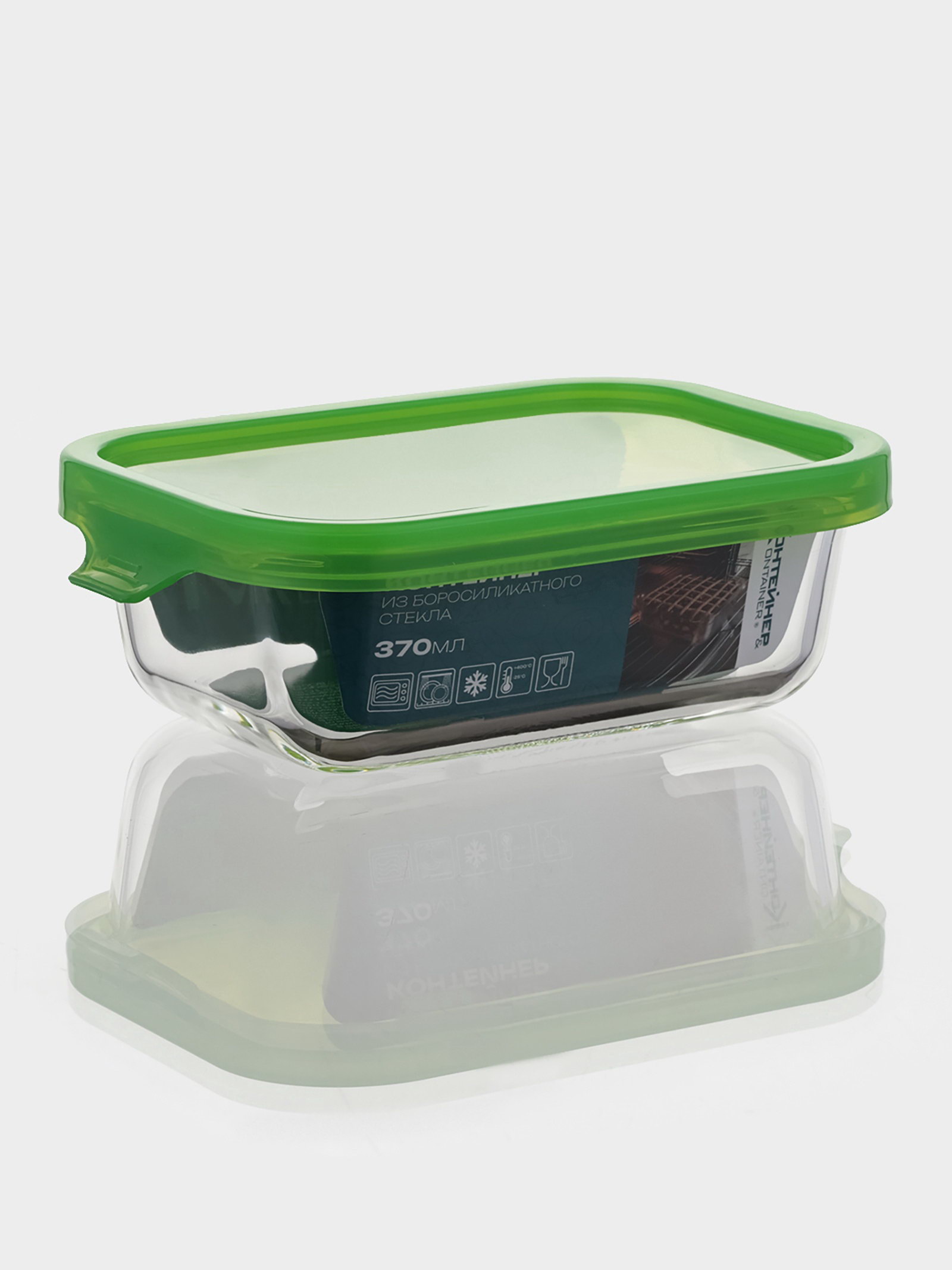 Размер упаковки: 11 x 5.5 x 16.5 см. tnved: 7013500000 Температурное ограничение: Нет Цвет: Прозрачный Цвет крышки: Зелёный Форма: Прямоугольник Набор: Нет Рисунок: Нет Особенности: Без особенностей Стеклянный контейнер объёмом 370 мл это помощник на кухне, в офисе или в дороге. Онсохраняет содержимое свежим и защищает от заветривания и других запахов. Идеален для перекусов, заготовок, специй или мелких предметов. Особенности: