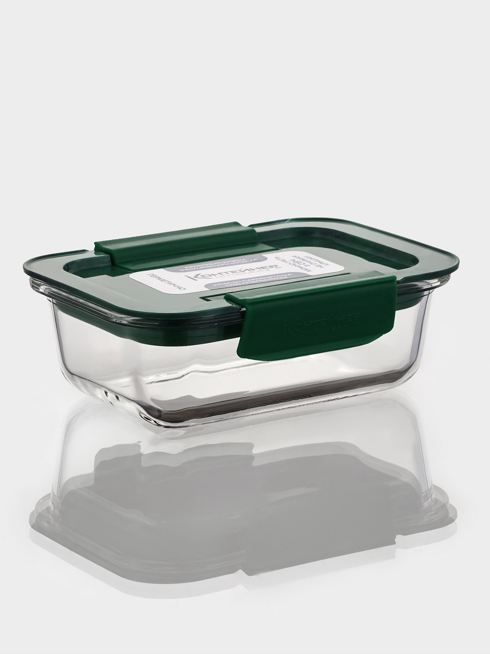 Особенности: Герметичный, С защёлкой Размер упаковки: 11 x 5 x 14.5 см. tnved: 7013500000 Температурное ограничение: Нет Цвет: Прозрачный Форма: Прямоугольник Цвет крышки: Зелёный Набор: Нет Рисунок: Нет Стеклянный контейнер объёмом 370 мл с паровыпуском и защёлкой это умное решение для тех, кто разогревает еду в микроволновке, но не хочет мыть брызги по всей кухне. Прозрачный, компактный, герметичный подходит для перекусов, заготовок или специй. Особенности:
