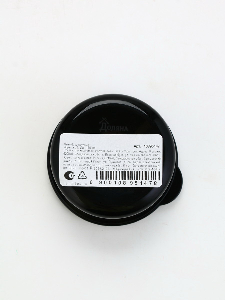 Размер упаковки: 7.7 x 4.3 x 8.3 см. tnved: 3924100000 Цвет: Чёрный Форма: Круг Рисунок: Да Цвет крышки: Чёрный Особенности: Герметичный Герметичная крышка: Да Можно использовать в СВЧ-печи: Да Можно мыть в посудомоечной машине: Да Набор: Нет Тематика праздника: Универсальная тематика Ланч-бокс 150 млПрактичный ланч-бокс объемом 150 мл идеальный спутник для тех, кто ценит удобство и заботится о здоровом питании. Ланч-бокс изготовлен из качественных безопасных материалов, герметично закрывается и надежно защищает пищу от протекания. Компактный дизайн делает его удобным для переноски в рюкзаке или сумке. Отлично подходит для работы, учебы, пикников или путешествий. С этим ланч-боксом вы сможете наслаждаться домашней едой в любое время и в любом месте! | ||