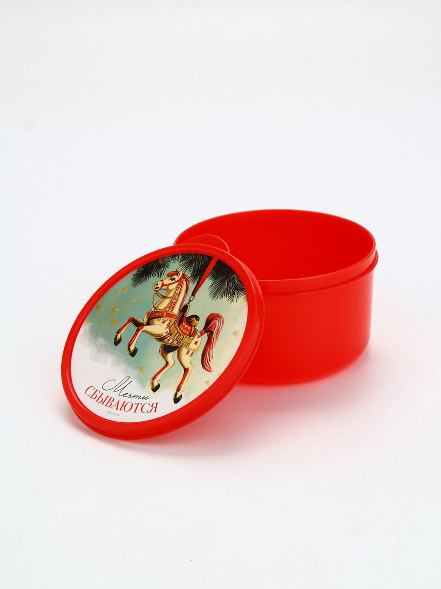Размер упаковки: 12 x 6.5 x 12.6 см. tnved: 3924100000 Символ года: Символ года 2026 (Лошадь) Тематика праздника: Новый год Набор: Нет Цвет: Красный Форма: Круг Рисунок: Да Особенности: Герметичный Цвет крышки: Разноцветный Наличие столовых приборов: Нет Герметичная крышка: Да Можно мыть в посудомоечной машине: Да Можно использовать в СВЧ-печи: Да Ланч-бокс "Мечты сбываются" идеальный подарок для ваших близких! Этот стильный и функциональный ланч-бокс станет незаменимым помощником в организации здорового питания. Преимущества: