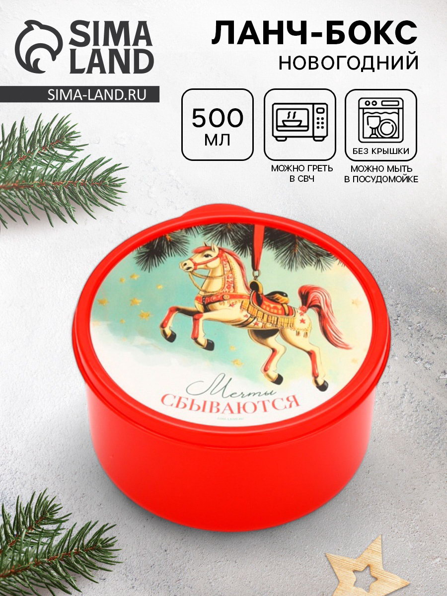 Ланч - бокс круглый "Новогодние мечты сбываются", 500 мл, 500 мл., Сима-ленд, Россия