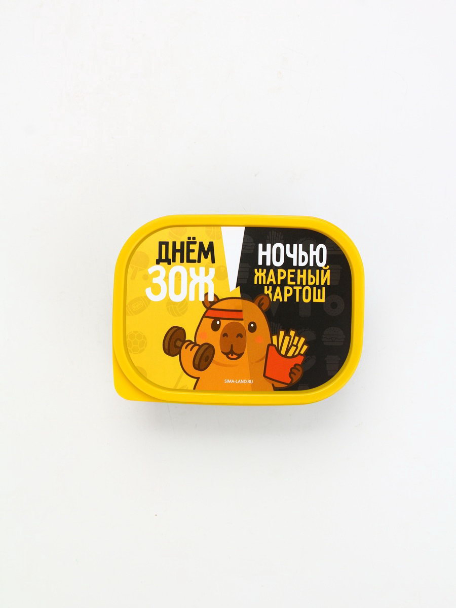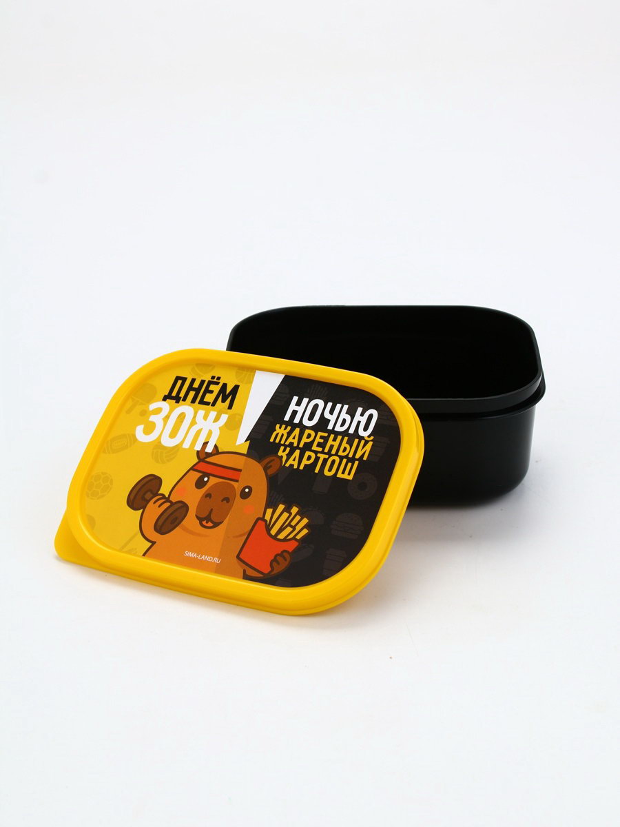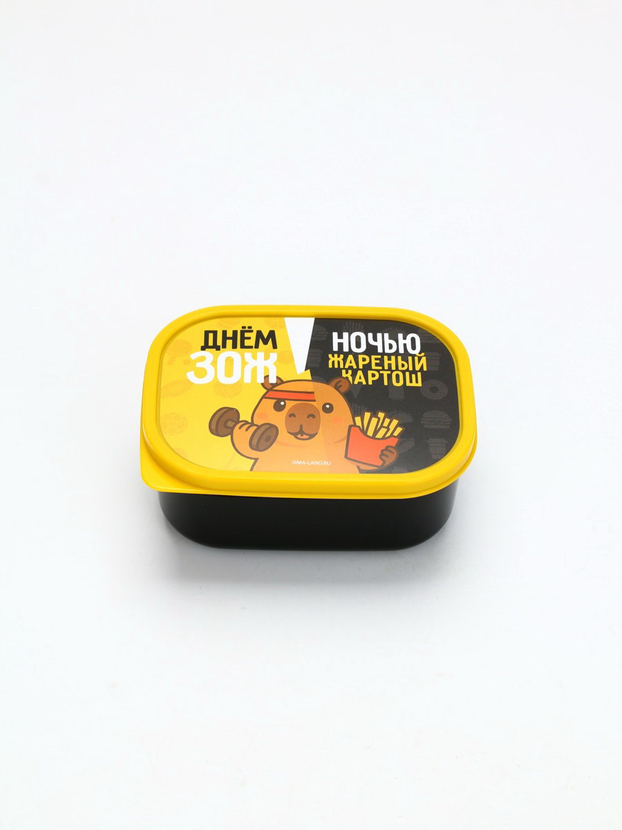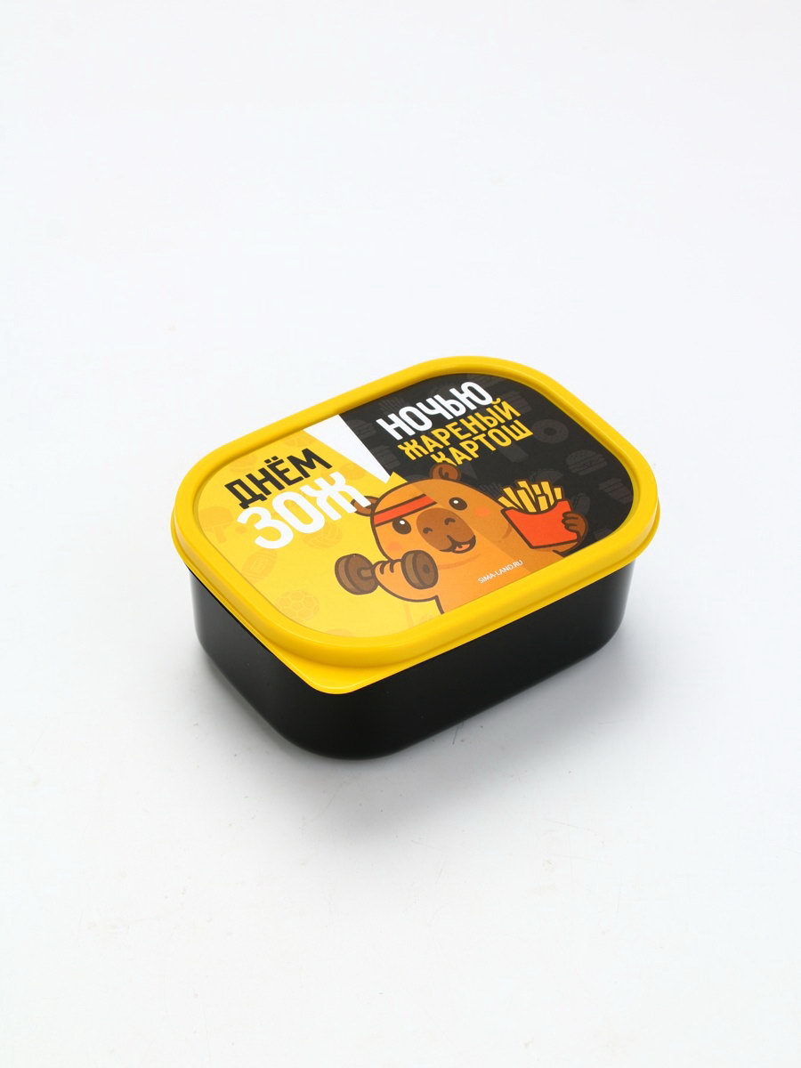 Размер упаковки: 13.3 x 5.5 x 10 см. tnved: 3924100000 Особенности: Герметичный Цвет крышки: Жёлтый Форма: Прямоугольник Цвет: Чёрный Рисунок: Да Герметичная крышка: Да Можно использовать в СВЧ-печи: Да Можно мыть в посудомоечной машине: Да Набор: Нет Ланч-бокс 500 млПрактичный ланч-бокс объемом 500 мл идеальный спутник для тех, кто ценит удобство и заботится о здоровом питании. Вместительный контейнер позволяет взять с собой полноценный обед, сохранив свежесть и аппетитный вид блюд. Ланч-бокс изготовлен из качественных безопасных материалов, герметично закрывается и надежно защищает пищу от протекания. Компактный дизайн делает его удобным для переноски в рюкзаке или сумке. Отлично подходит для работы, учебы, пикников или путешествий. С этим ланч-боксом вы сможете наслаждаться домашней едой в любое время и в любом месте! | ||