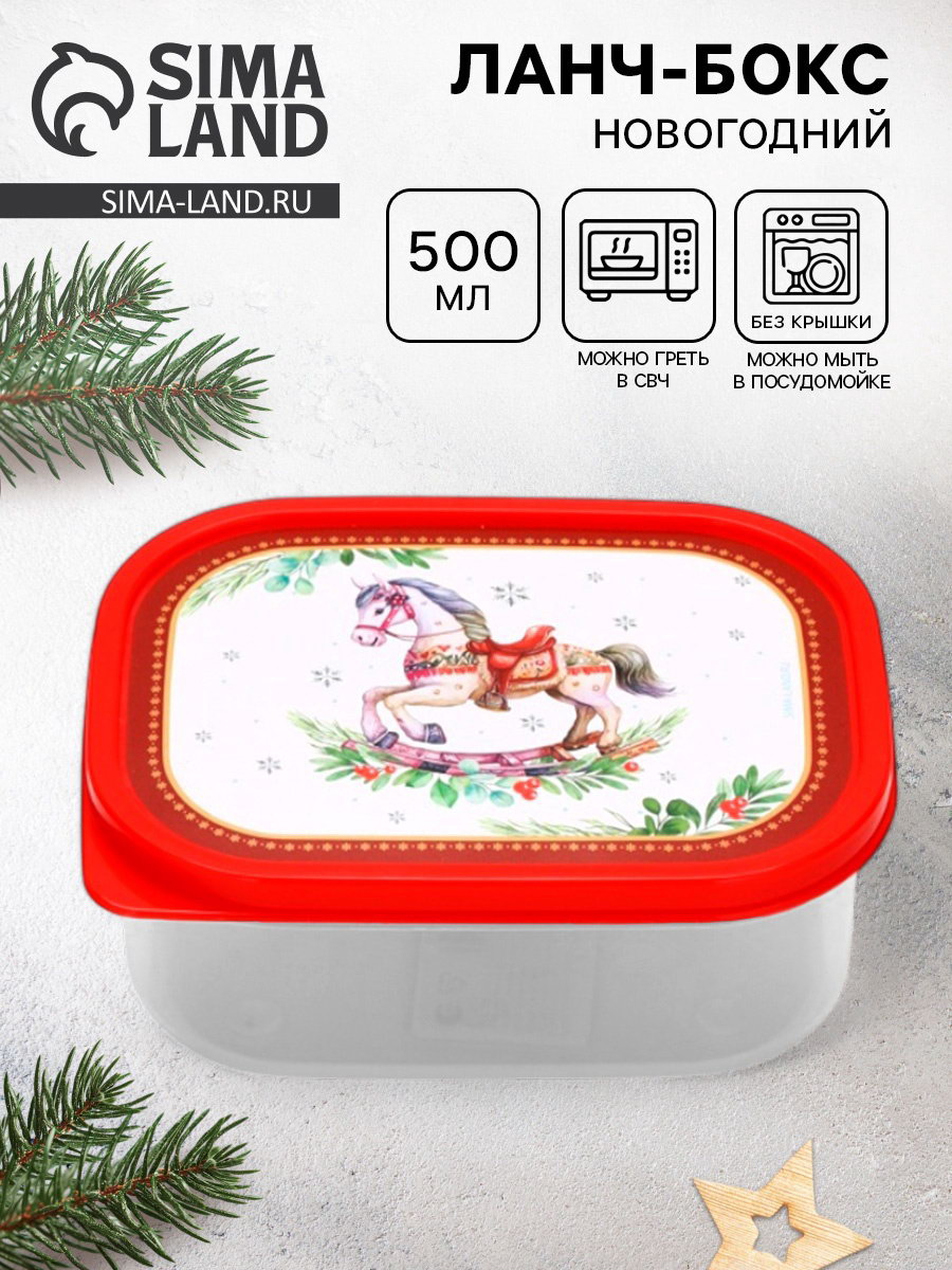 Ланч - бокс прямоугольный "Новогодняя лошадка", 500 мл, 500 мл., Сима-ленд, Россия