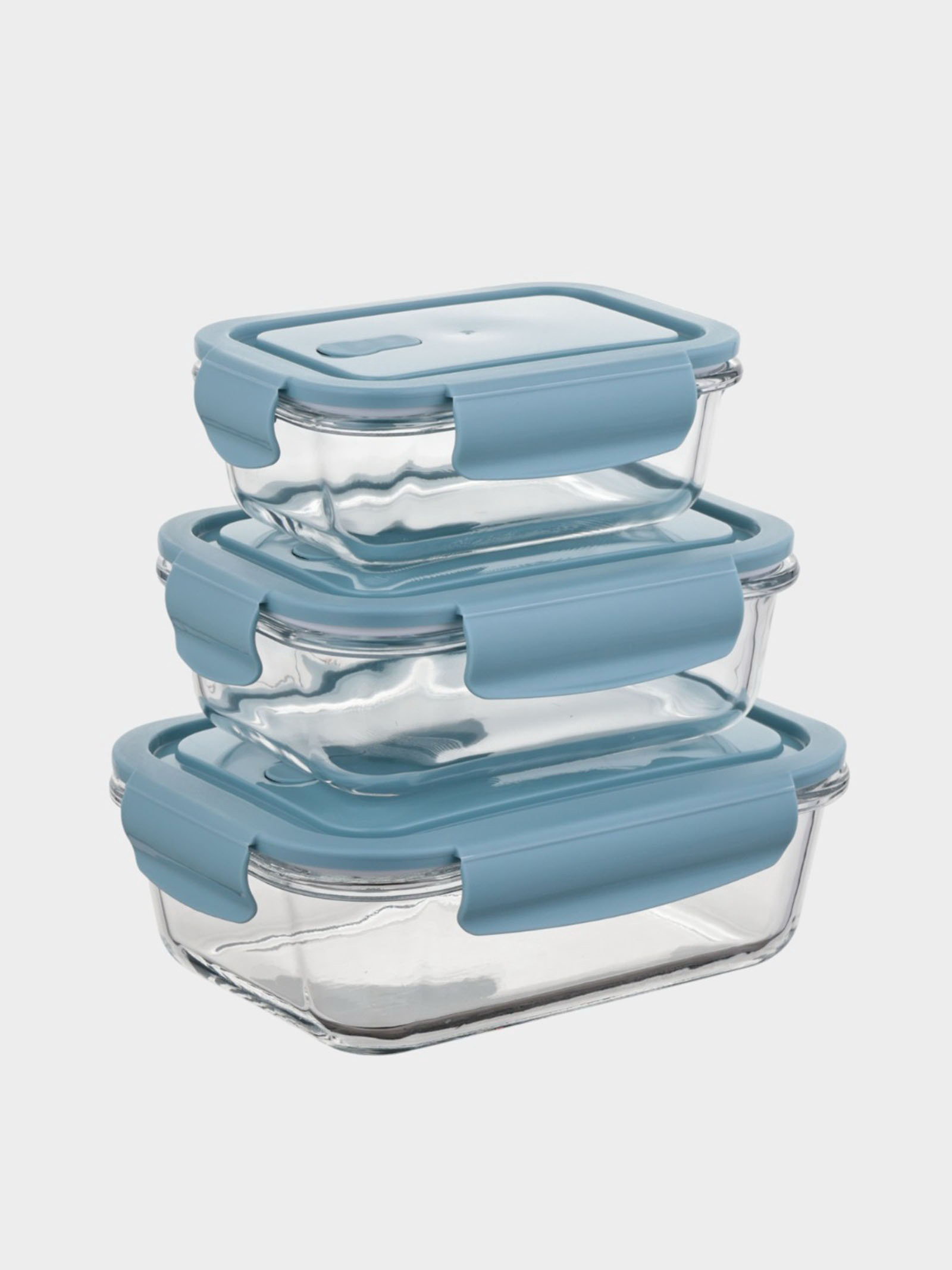 Набор контейнеров, 3 шт.: 410/690/1040 мл, стекло, прозрачный, синяя крышка, 15.5x20.5x7 см., Китай