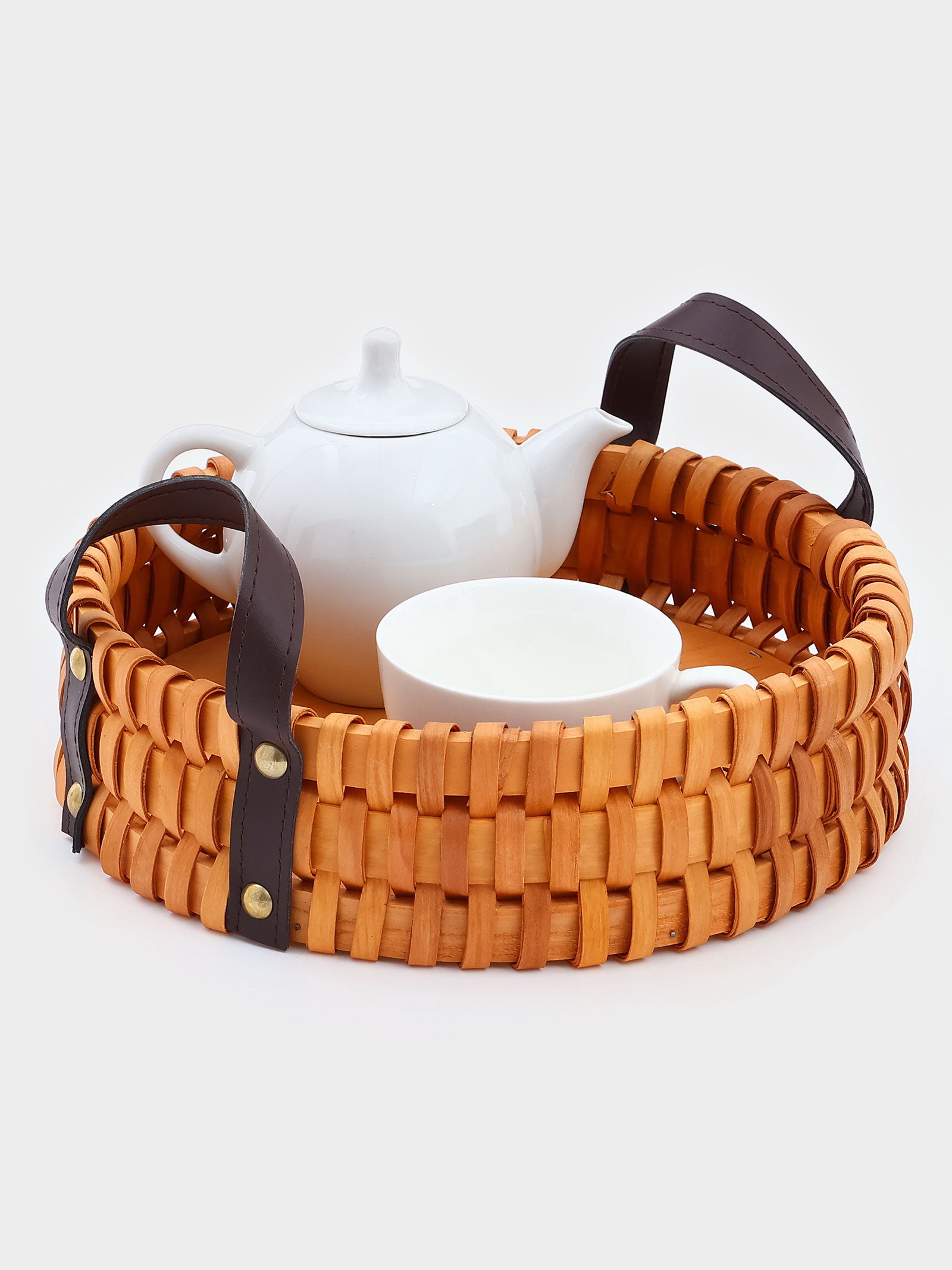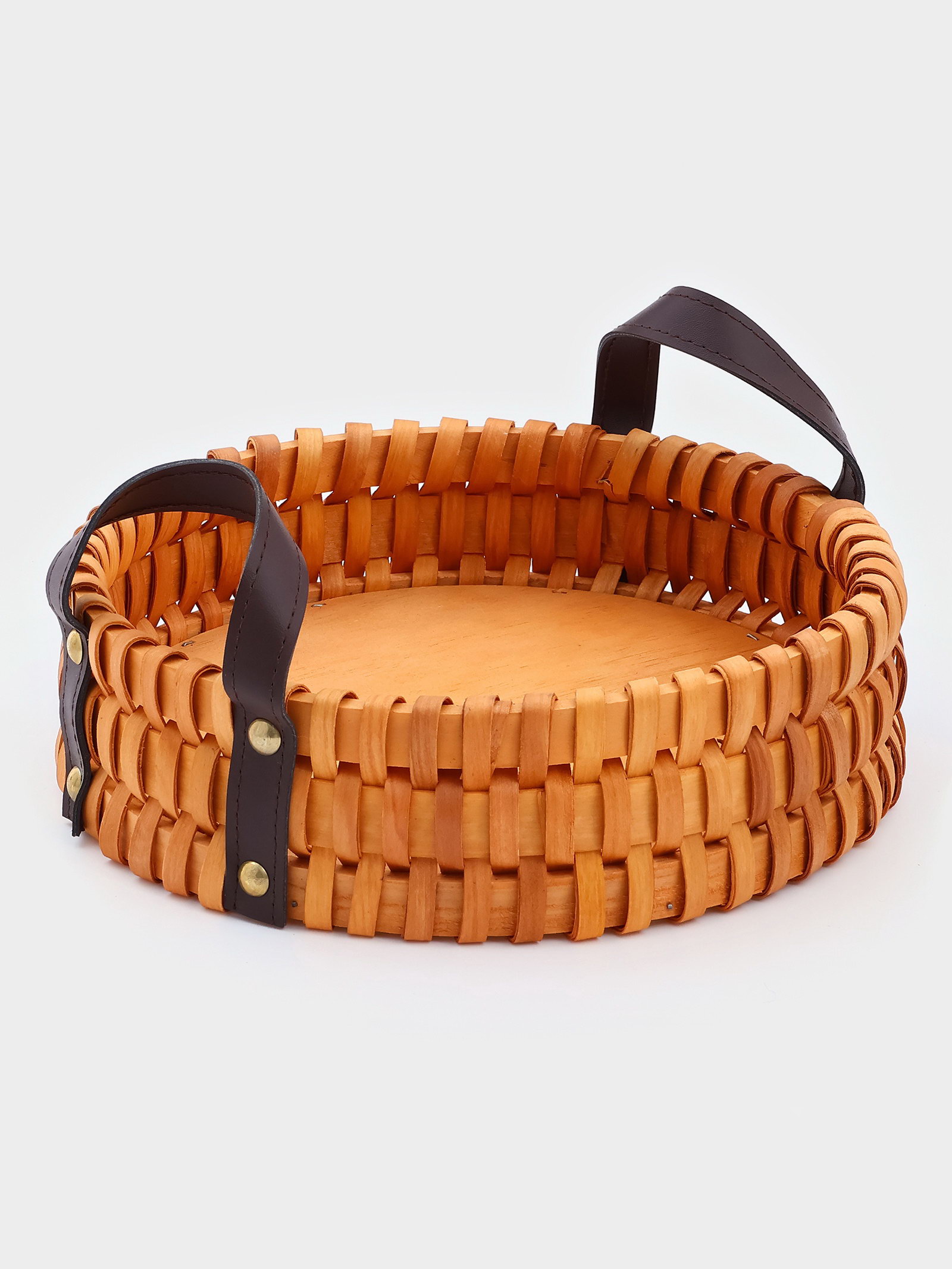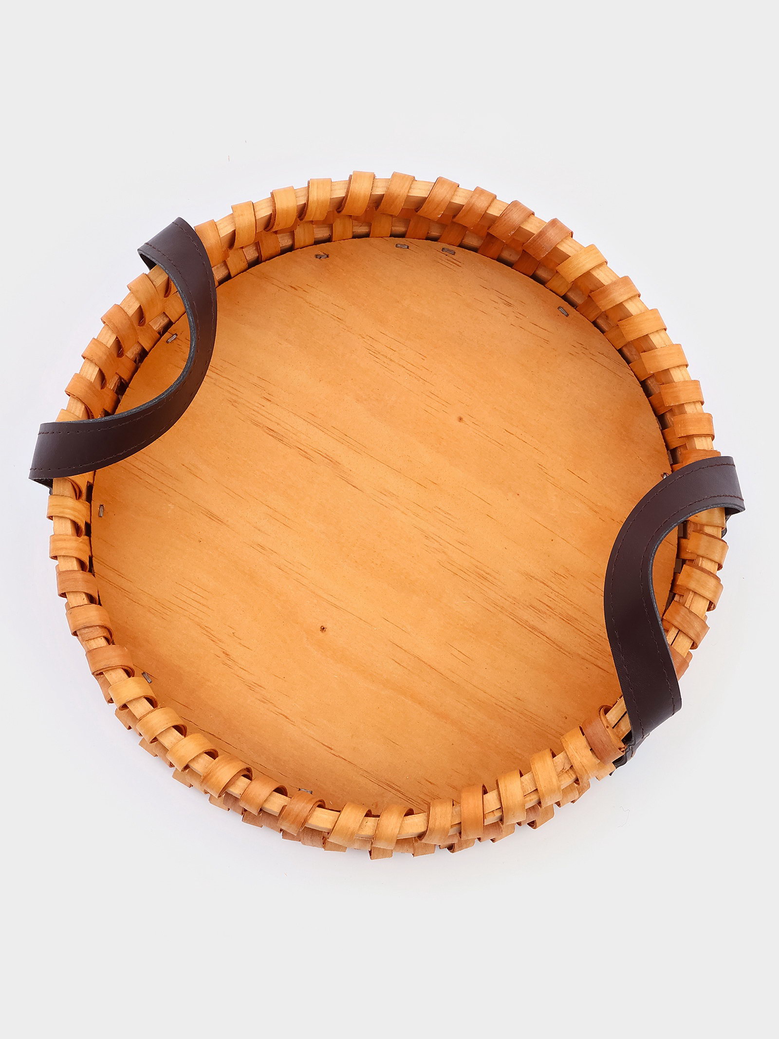 Поднос-корзинка для завтрака "Массив", с ручками из искусственной кожи, d=25 см, 25x25x7 см., Доляна, Китай