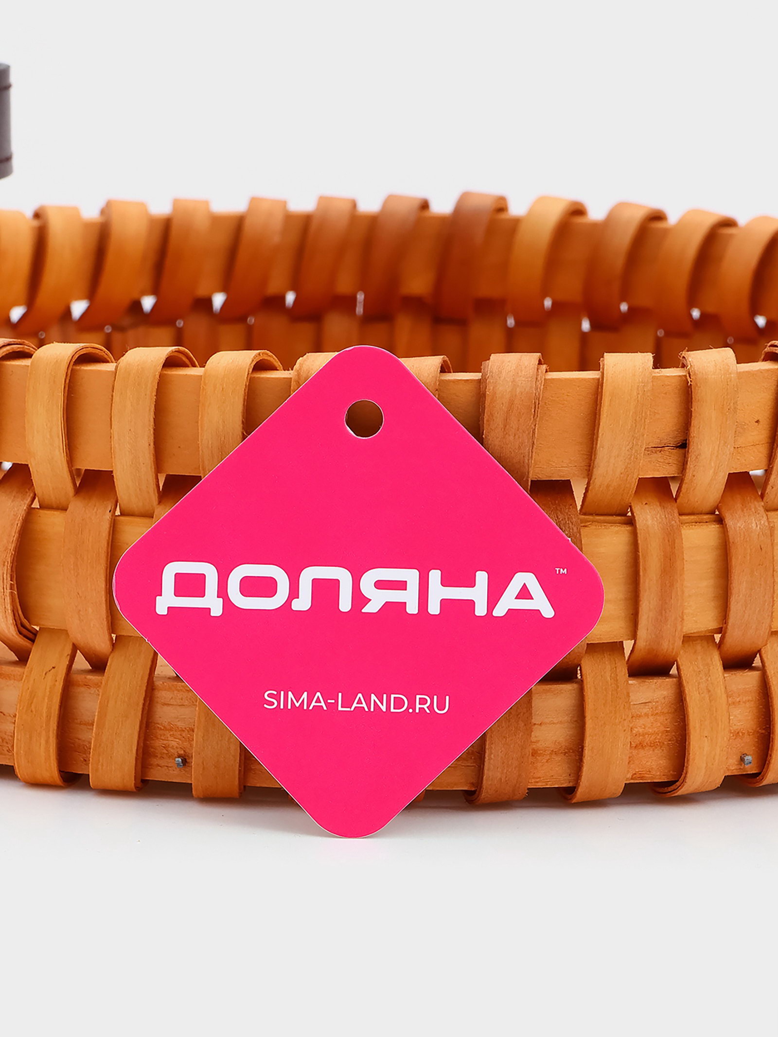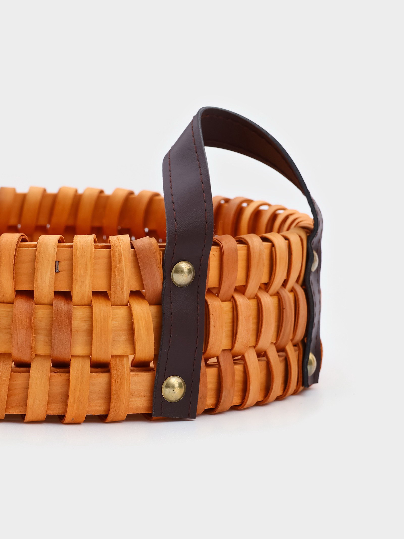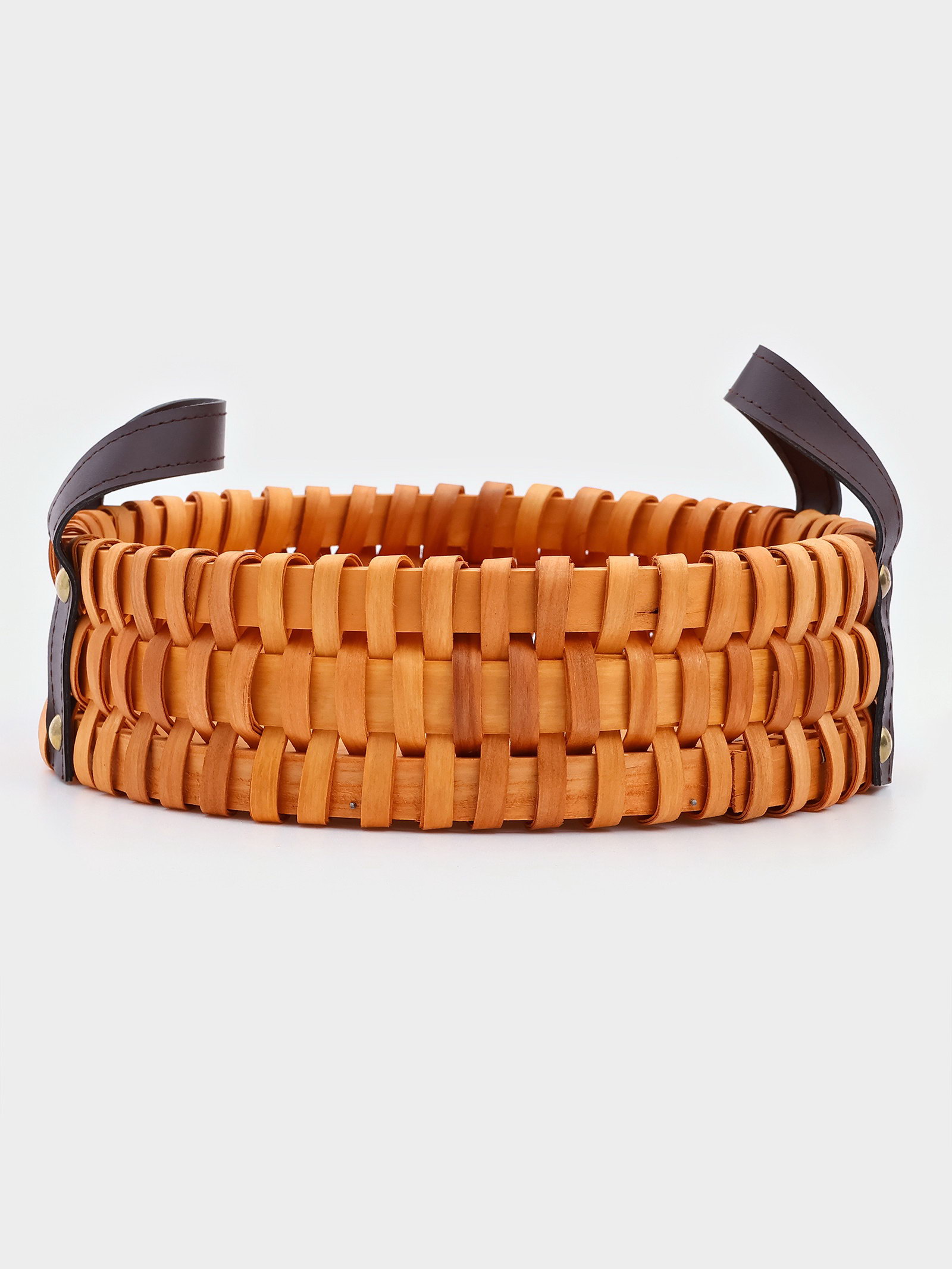 Поднос-корзинка для завтрака "Массив", с ручками из искусственной кожи, d=25 см, 25x25x7 см., Доляна, Китай