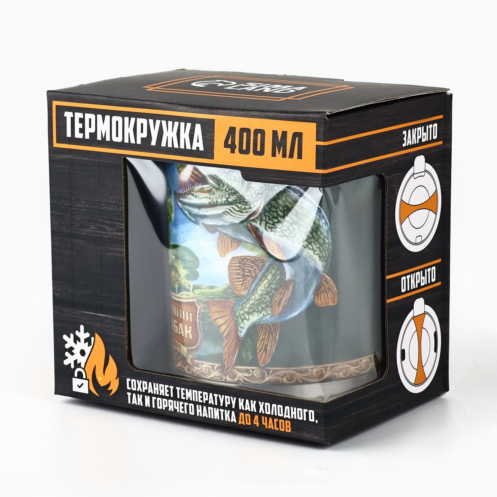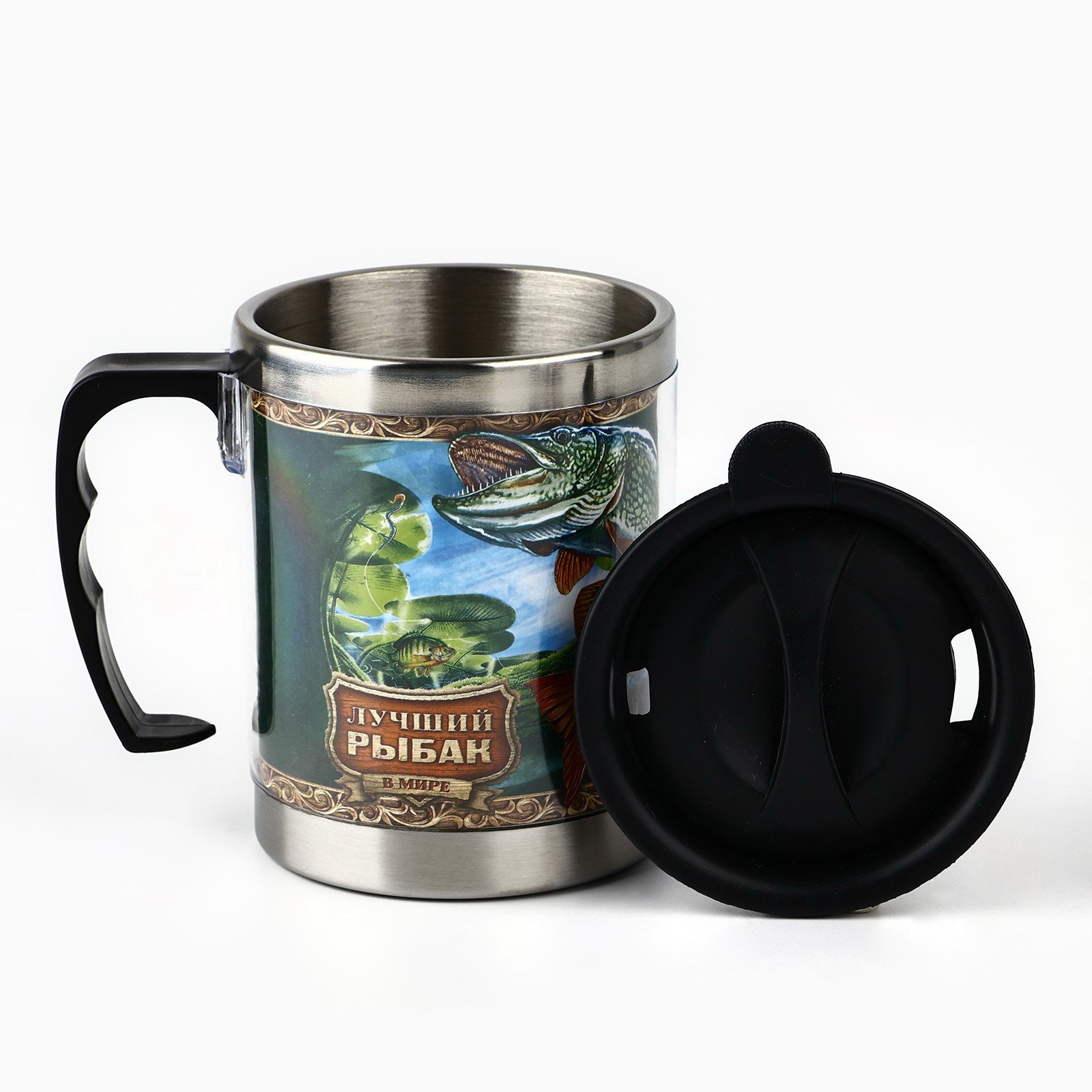 Термокружка "Лучший рыбак": 400 мл, сохраняет тепло 2 ч, 11x11.5x8.5 см., Сима-ленд, Китай