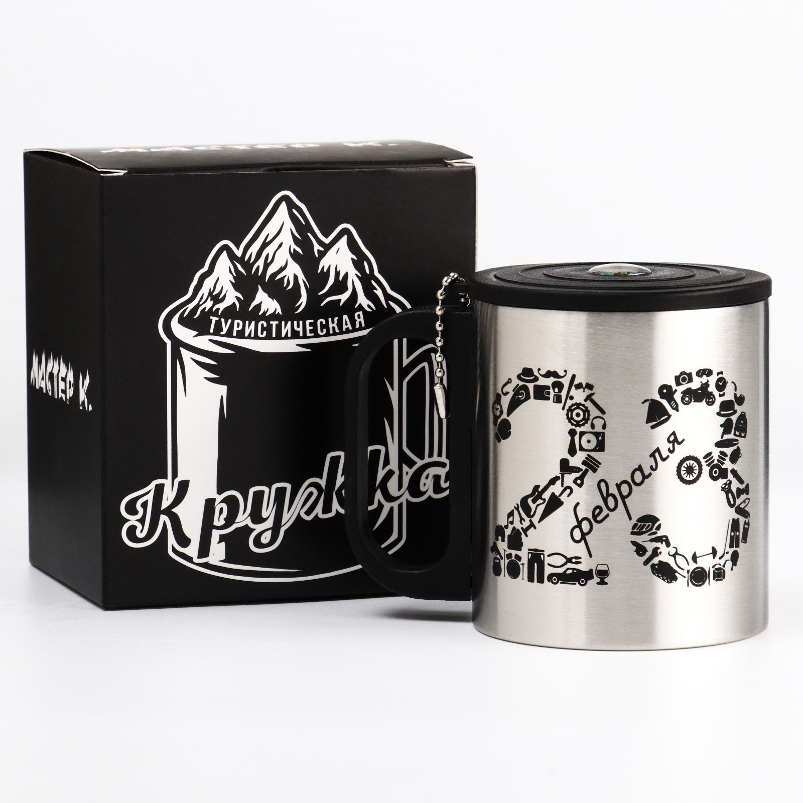 Размер упаковки: 9.5 x 10.5 x 7.5 см. Материал колбы: Металл Материал корпуса: Коррозионностойкая сталь Вакуумный: Нет Слои: Однослойные Тематика праздника: 23 Февраля tnved: 7323930000 tnved: 7323930000 Время сохранения тепла/холода, ч: 2 Цвет: Хромированный Крышка: Да Наличие дополнительной ёмкости: Нет Наличие столовых приборов: Нет Тип горлышка: Стандартное Особенности: С компасом Рисунок: Да Стильная и яркая термокружка "Мастер К" для кофе и чая, подарит вам тепло и уют. Двухслойная конструкция кружки из нержавеющего металла снаружи и 304 нержавеющей стали внутри. Внутренняя колба из нержавеющей стали не впитывает запахи, не влияет на вкус напитка и легко моется. Термокружка "Мастер К" 180 мл (0.18 л) это яркое решение для любителей чая, кофе, травяных, ягодных и фруктовых заварок. Она позволяет не только согреться горячим кофе, чаем, матчей, какао, но и идеально подходит для прохладных напитков: чай со льдом, смузи или айс-кофе, которые вы можете взять с собой куда угодно.. Кружка из нержавейки станет отличным подарком рыболову, охотнику, папе или маме, бабушке или дедушке, другу, подруге, брату, сестре, детям, ребенку, девушке а еще коллеге или начальнику боссу на день рождения или 23 февраля, 9 мая, 8 марта, юбилей, новый год. Пойдет как кружка на пикник для путешественников. Это отличная альтернатива одноразовым стаканам.. Термокружка выполнена на основе двуслойной конструкции, при горячих напитках кружка не будет нагреваться и вам будет комфортно держать ее в руке.. Кружка имеет удобную пластиковую ручку, а крышка оснащена компасом, который поможет найти выход из трудной ситуации. При желании вы можете снять крышку и использовать ее без нее. Классическая форма стакана обеспечит удобство использования, а авторский дизайн подчеркнёт индивидуальность обладателя.. | ||