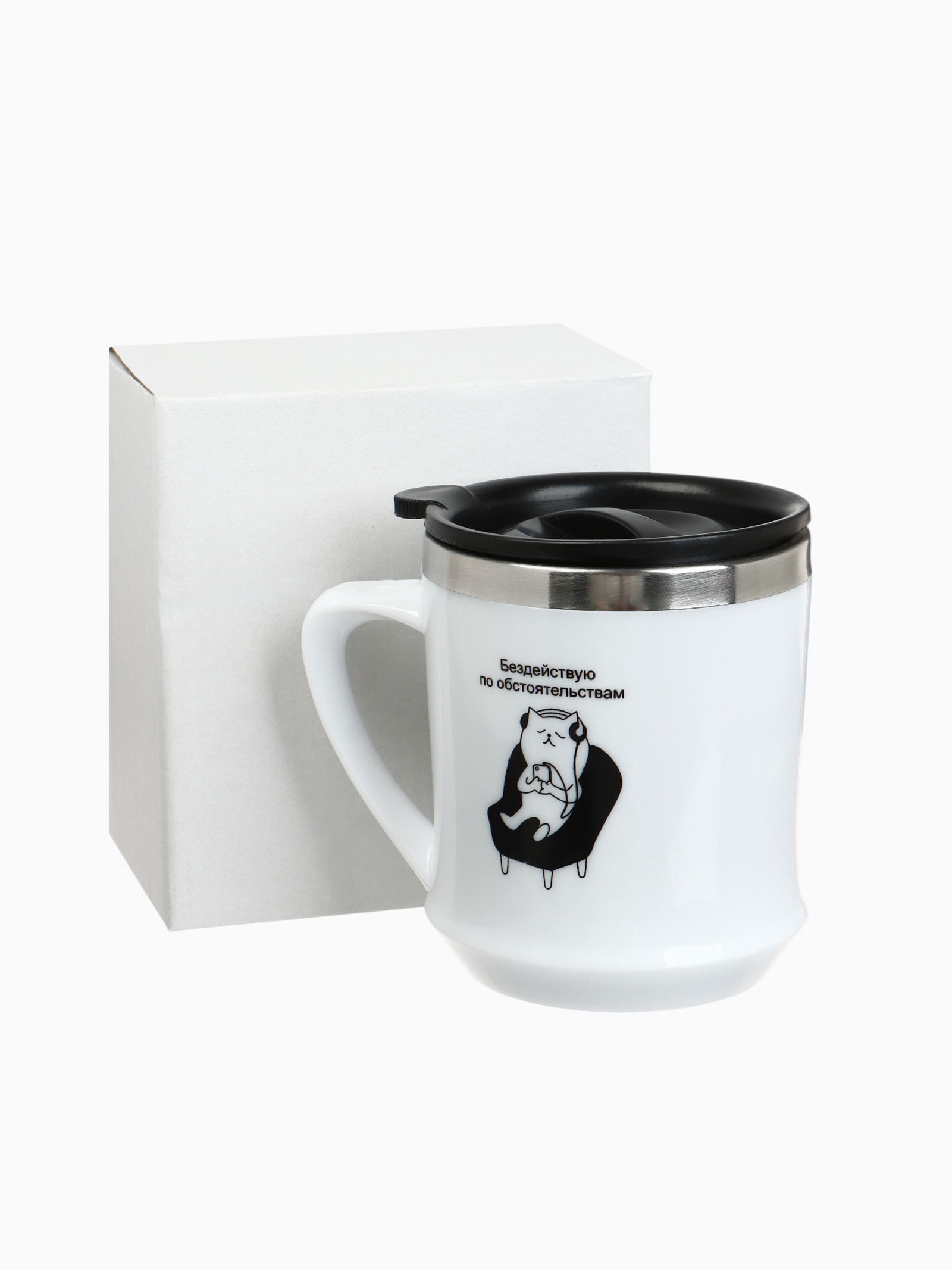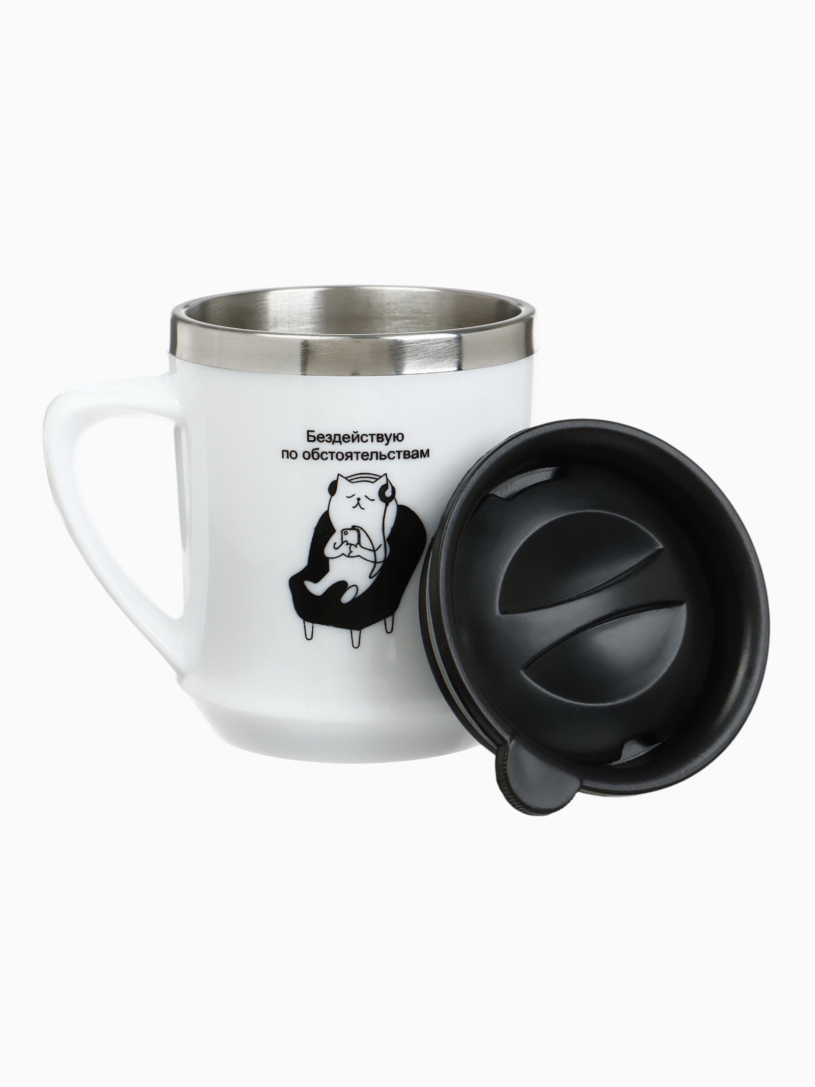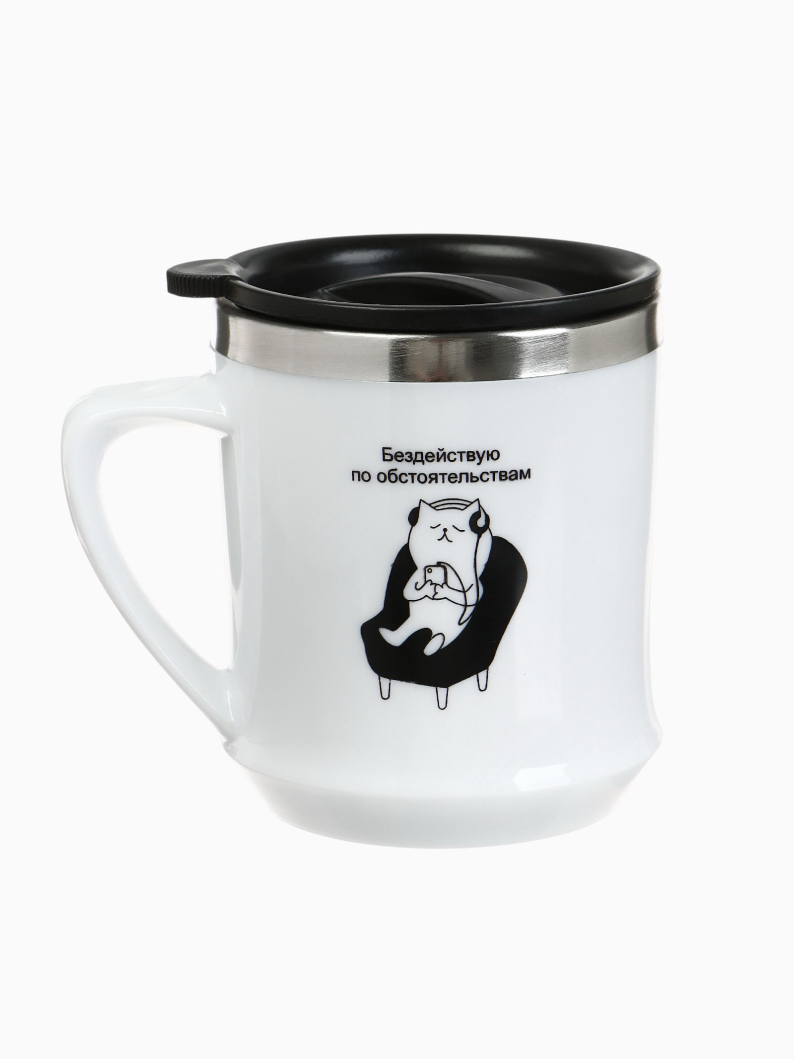 Термокружка, 350 мл, "Бездействую", сохраняет тепло 3 ч, белая, 8.5x12x9.6 см., Сима-ленд, Китай