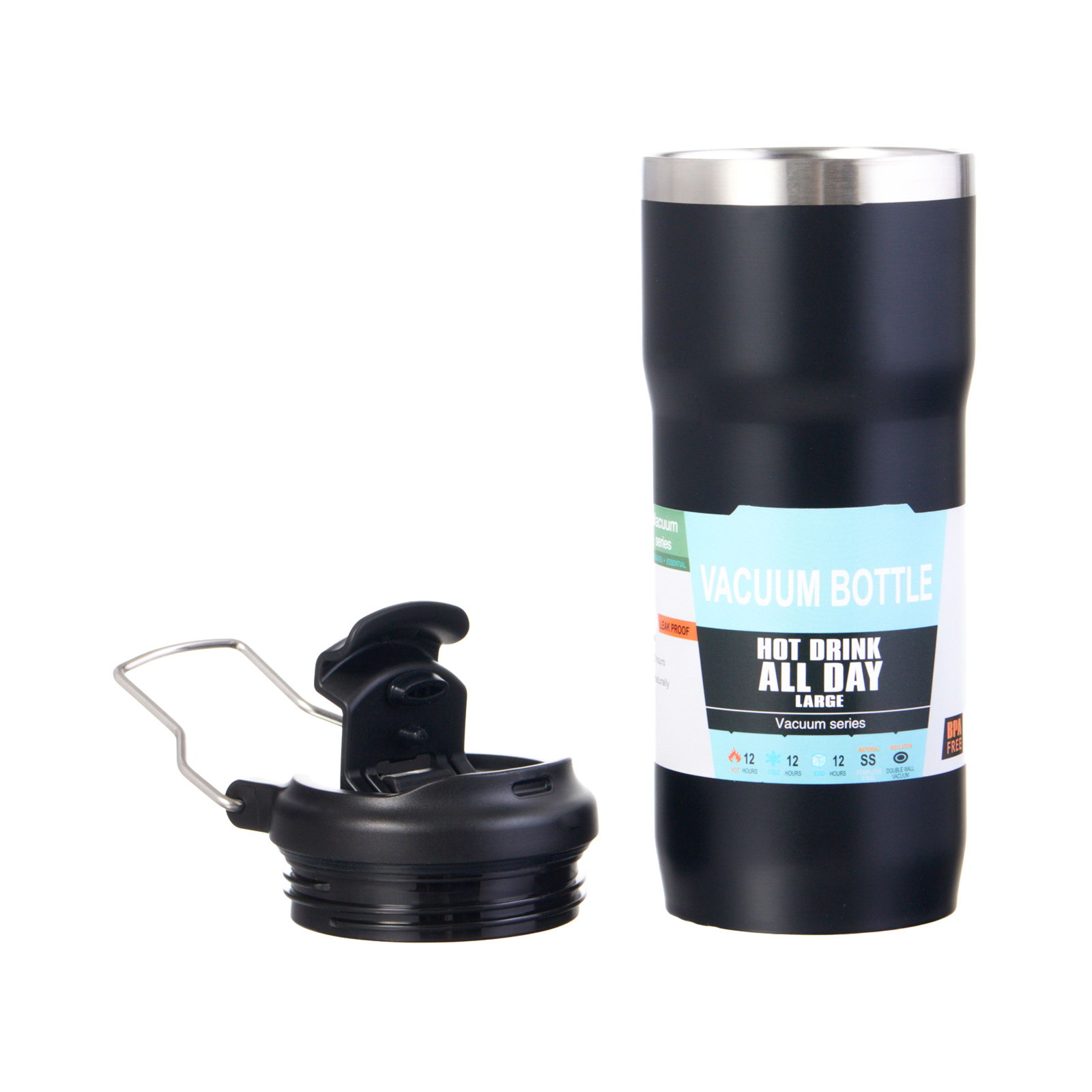 Термокружка, 600 мл, Путешествие, сохраняет тепло до 12 ч, 20.7 x 7.5 см, черная, 600 мл., Китай