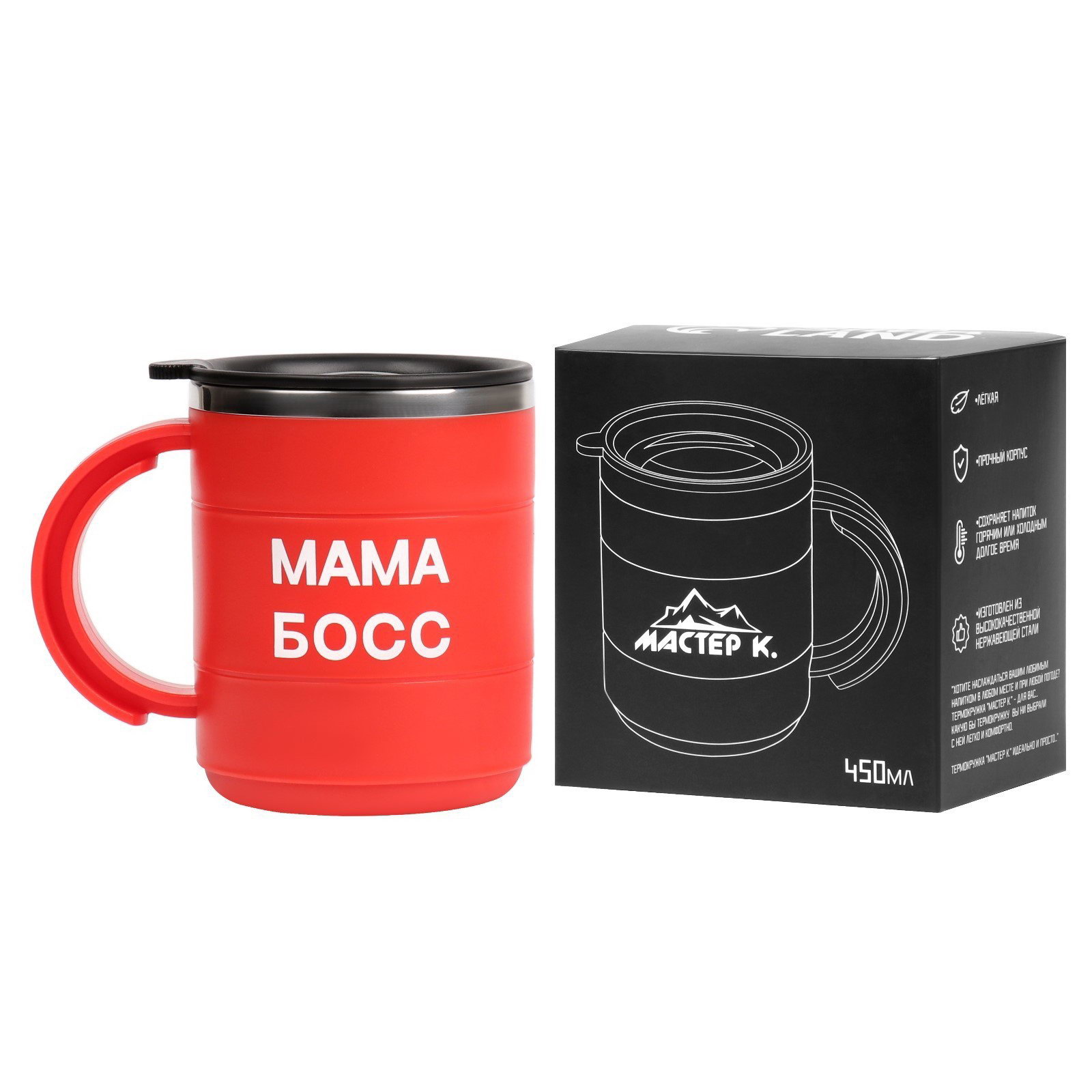 Термокружка Поход "Мама босс", 450 мл, сохраняет тепло 2 ч, красная, 450 мл., Мастер К, Китай