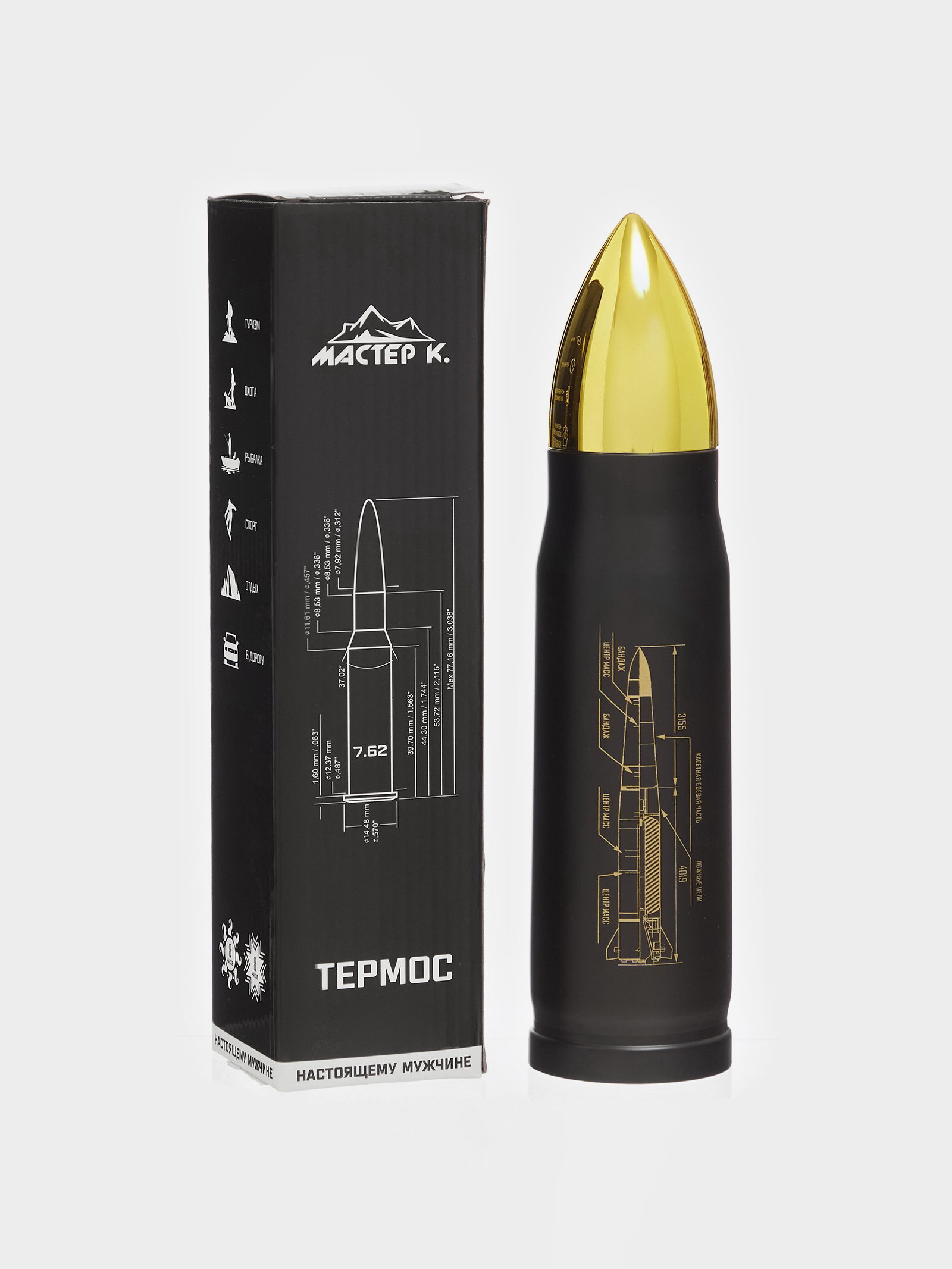Термос пуля "Калибр настоящего мужчины", 450 мл, 28x7 см, 7x28 см., Сима-ленд, Китай