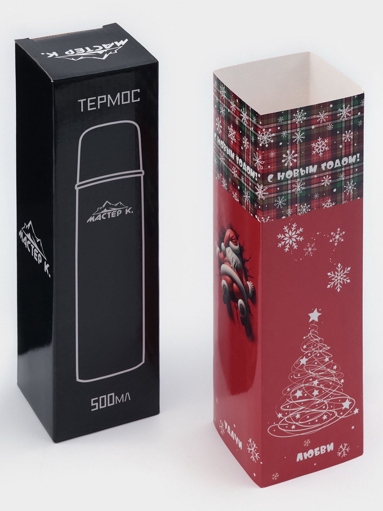Термос гильза 500 мл, 24x7 см, с кружкой, с помпой, сохраняет тепло 10 ч, нержавеющая сталь, чёрный, 6.5x24 см., Мастер К, Китай