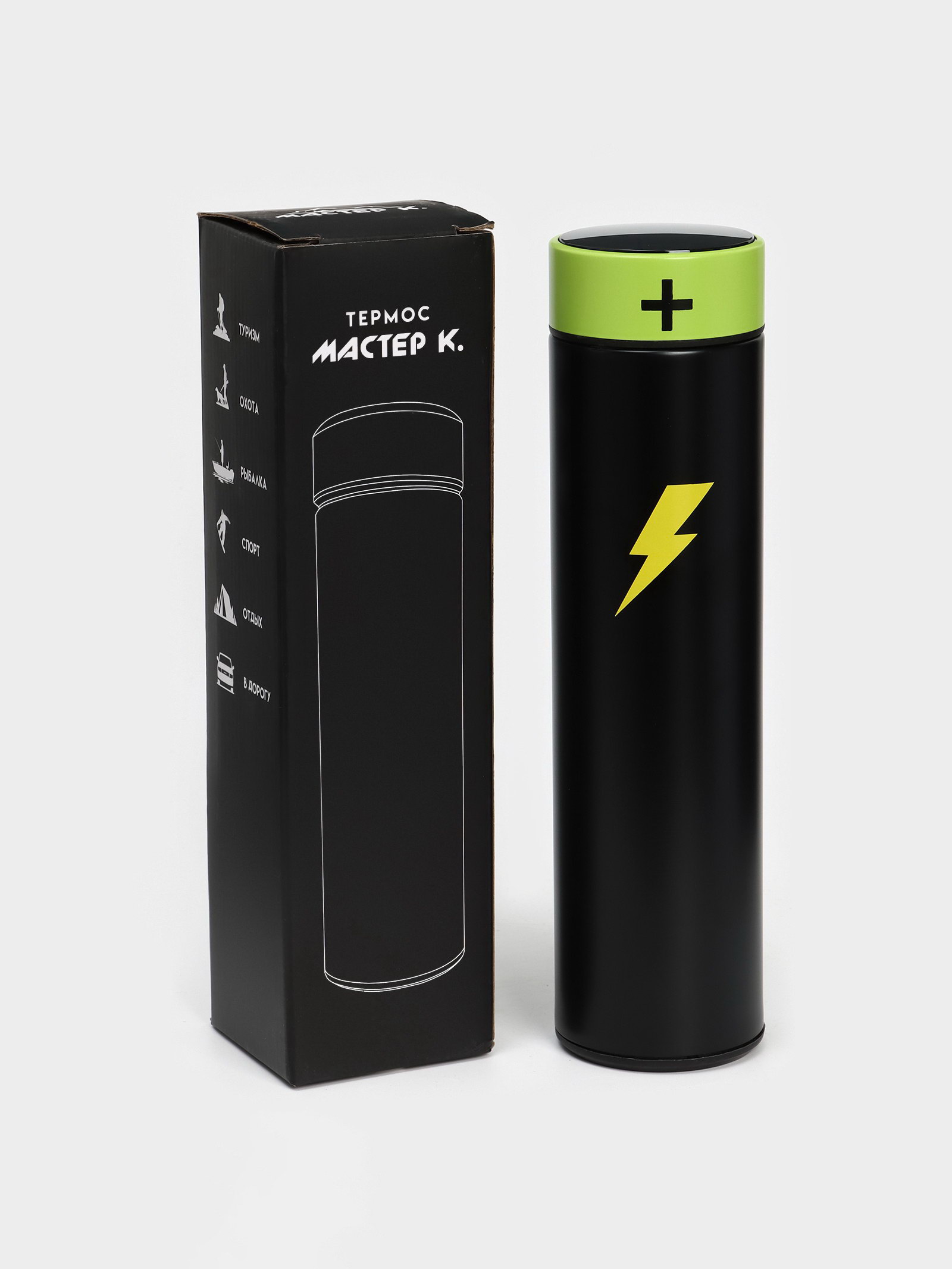 Термос "Заряд", 500 мл, с ситечком, с датчиком температуры, 6.5x6.5x23 см., Сима-ленд, Китай
