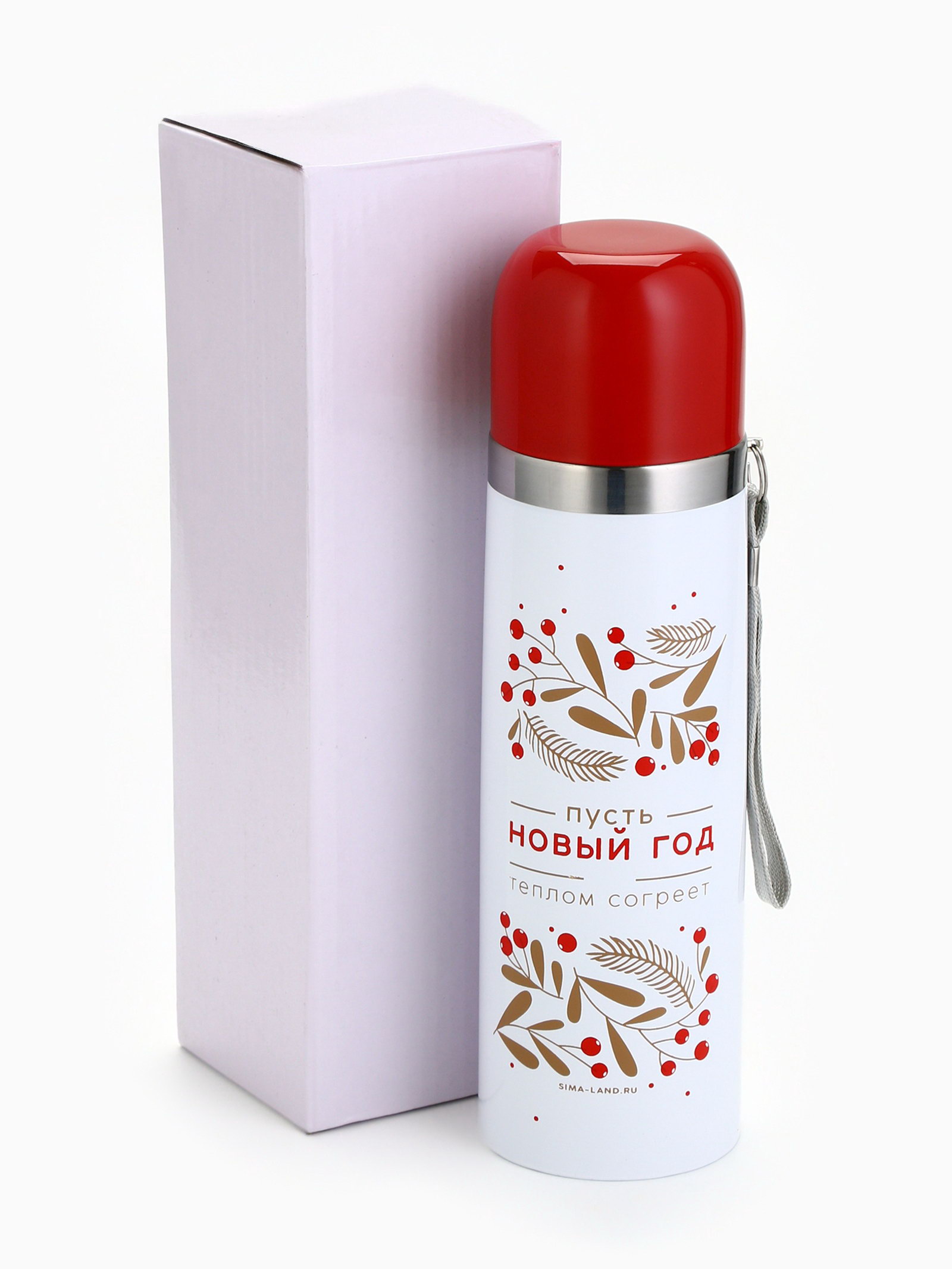 Термос с подвесом новогодний "Теплом согреет", 500 мл, 6.7x24.5x6.7 см., Сима-ленд, Китай