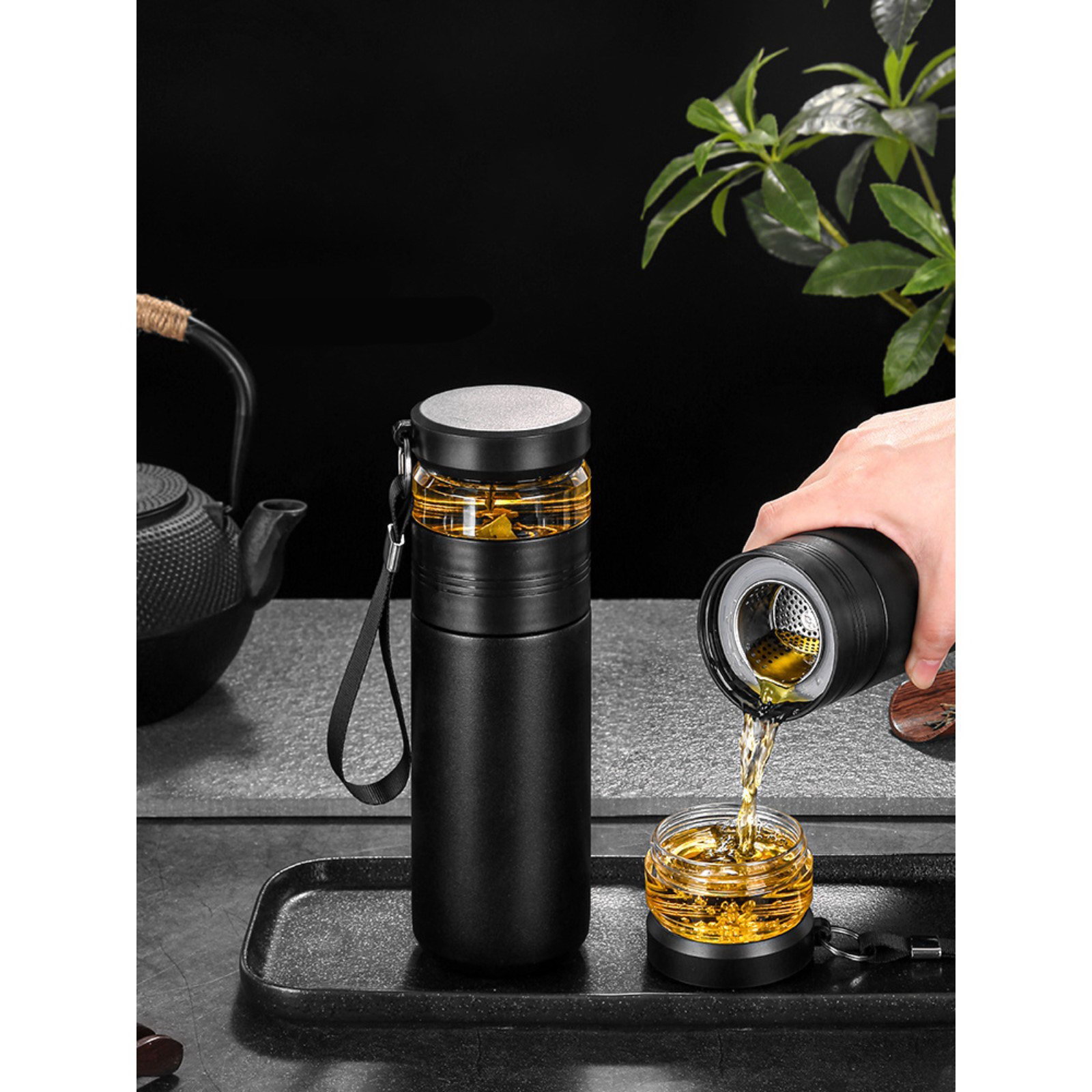 Термос, 500 мл, с колбой для заваривания, сохраняет тепло до 8 ч, нержавеющая сталь, чёрный, 500 мл., Китай