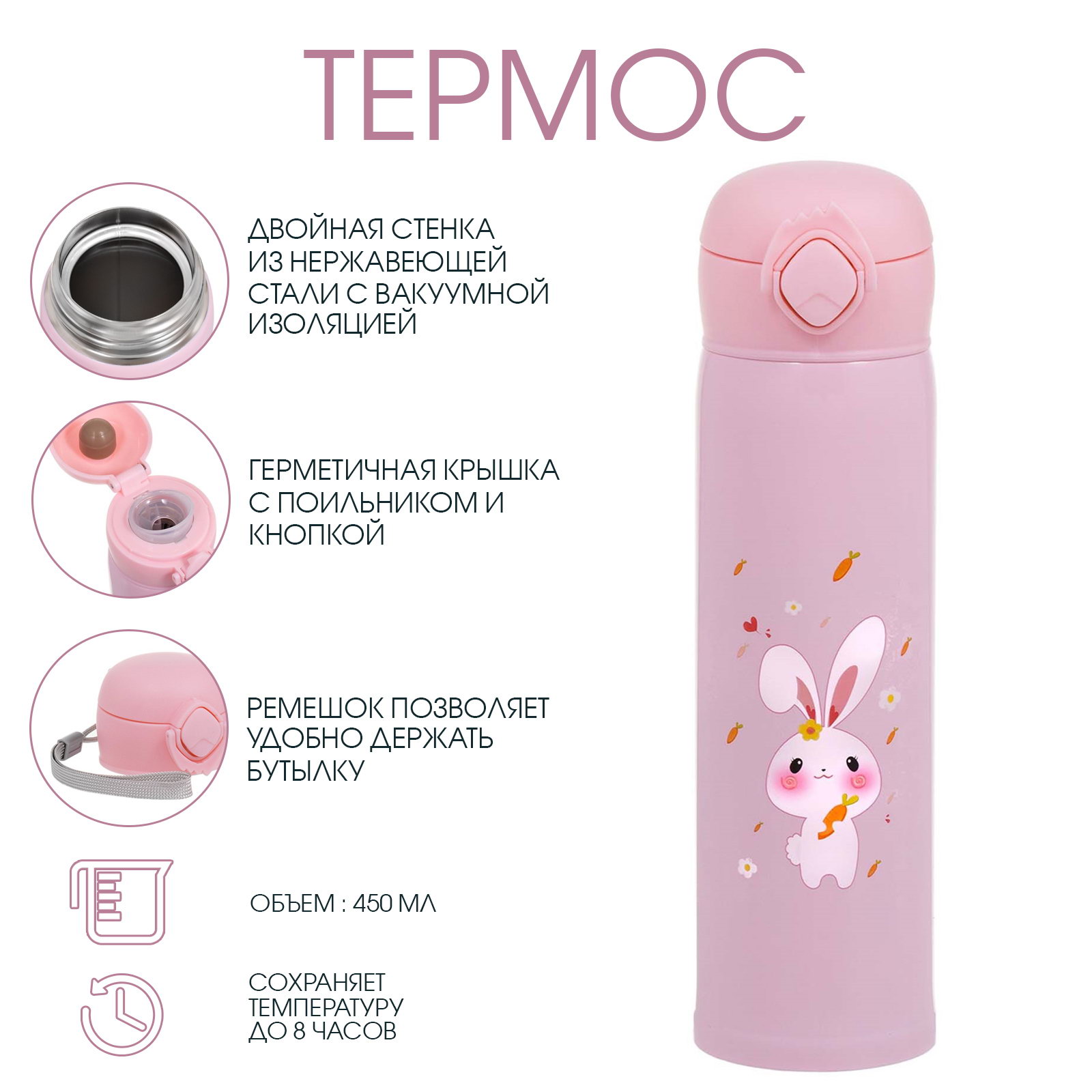 Термос, 450 мл, Детский "Кролик", сохраняет тепло до 8 ч, 450 мл., Китай