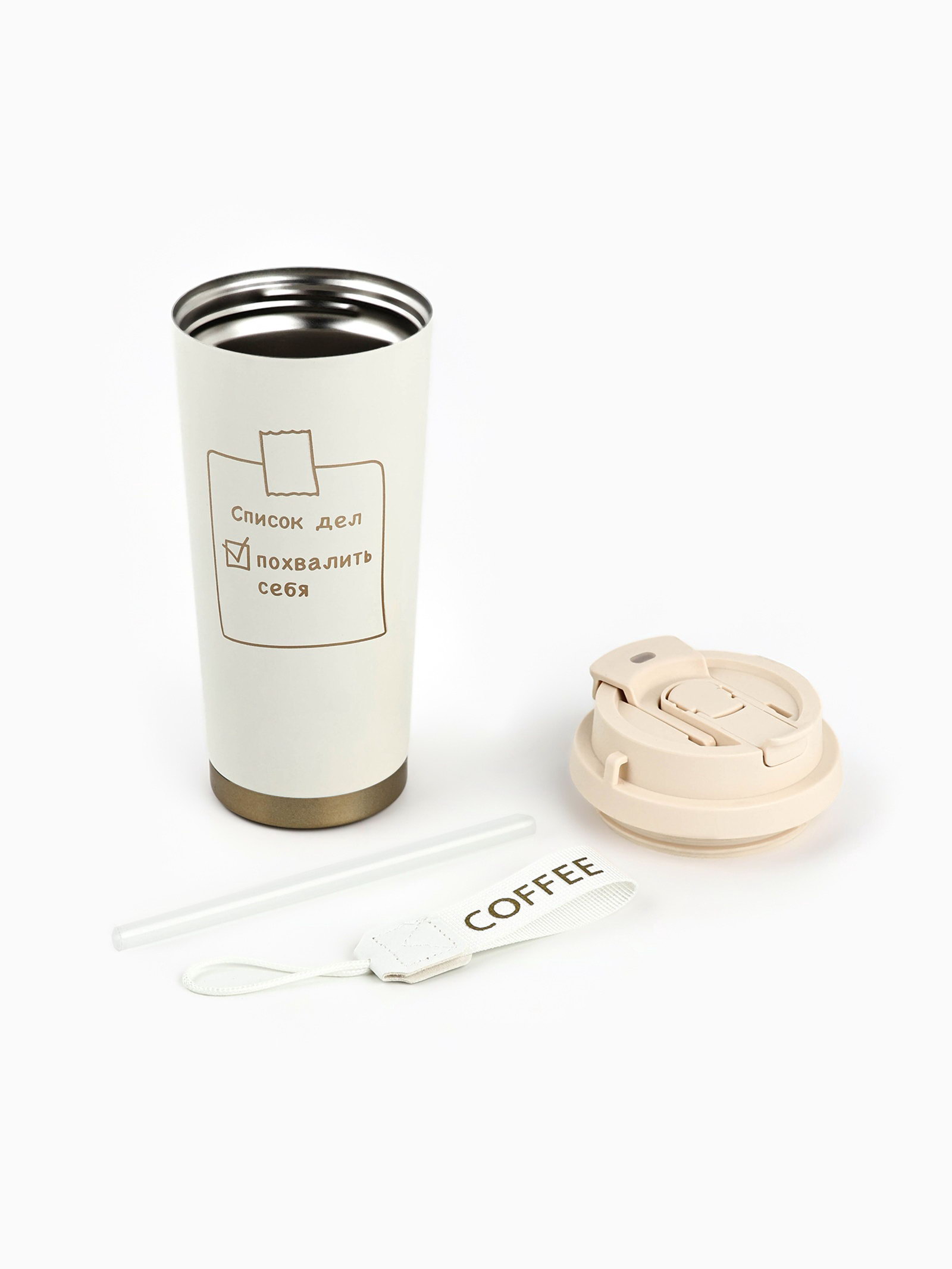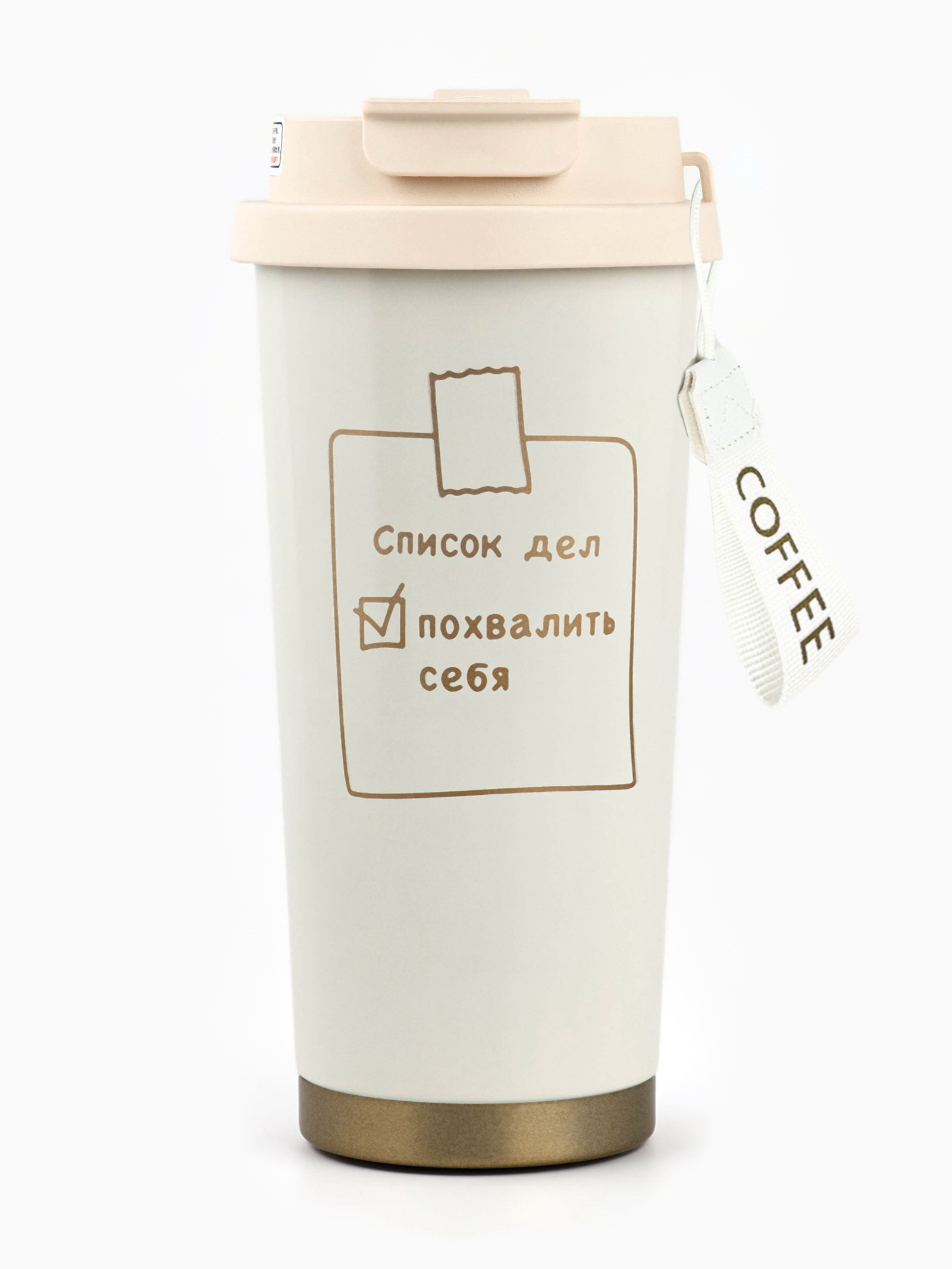 Термокружка с веревочкой "Список дел", 500 мл, белый, 6.5x6.5x19 см., Сима-ленд, Китай