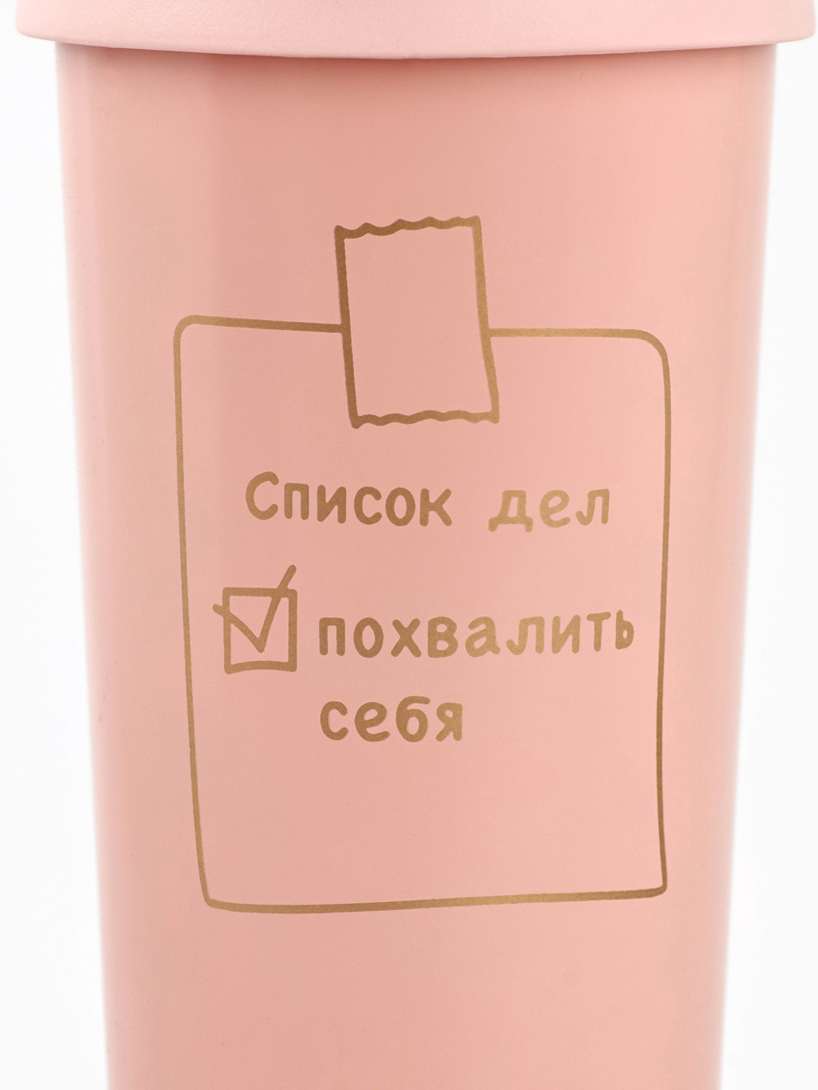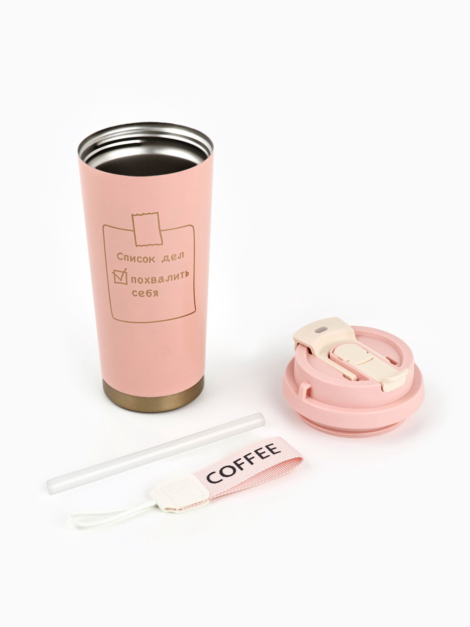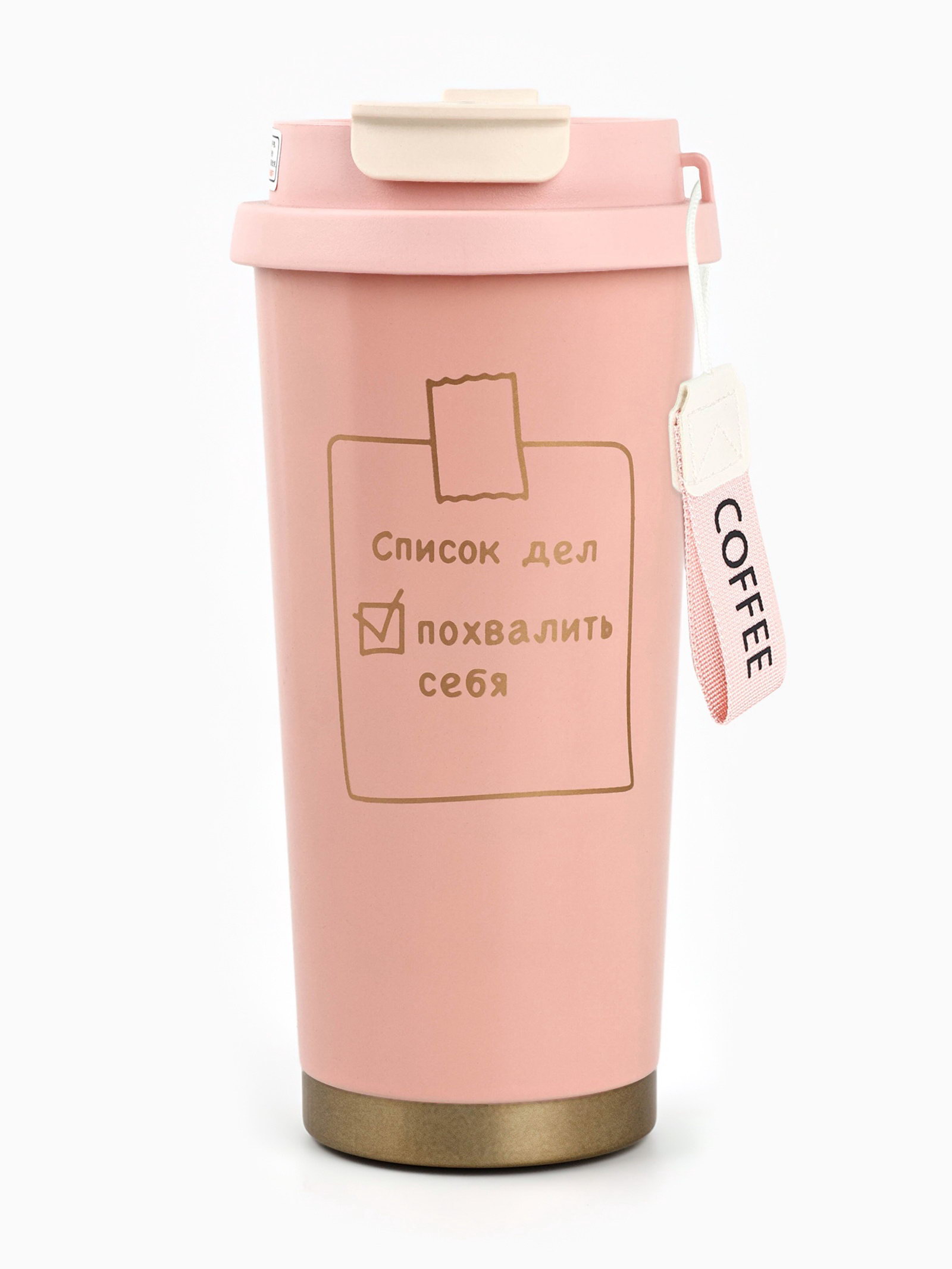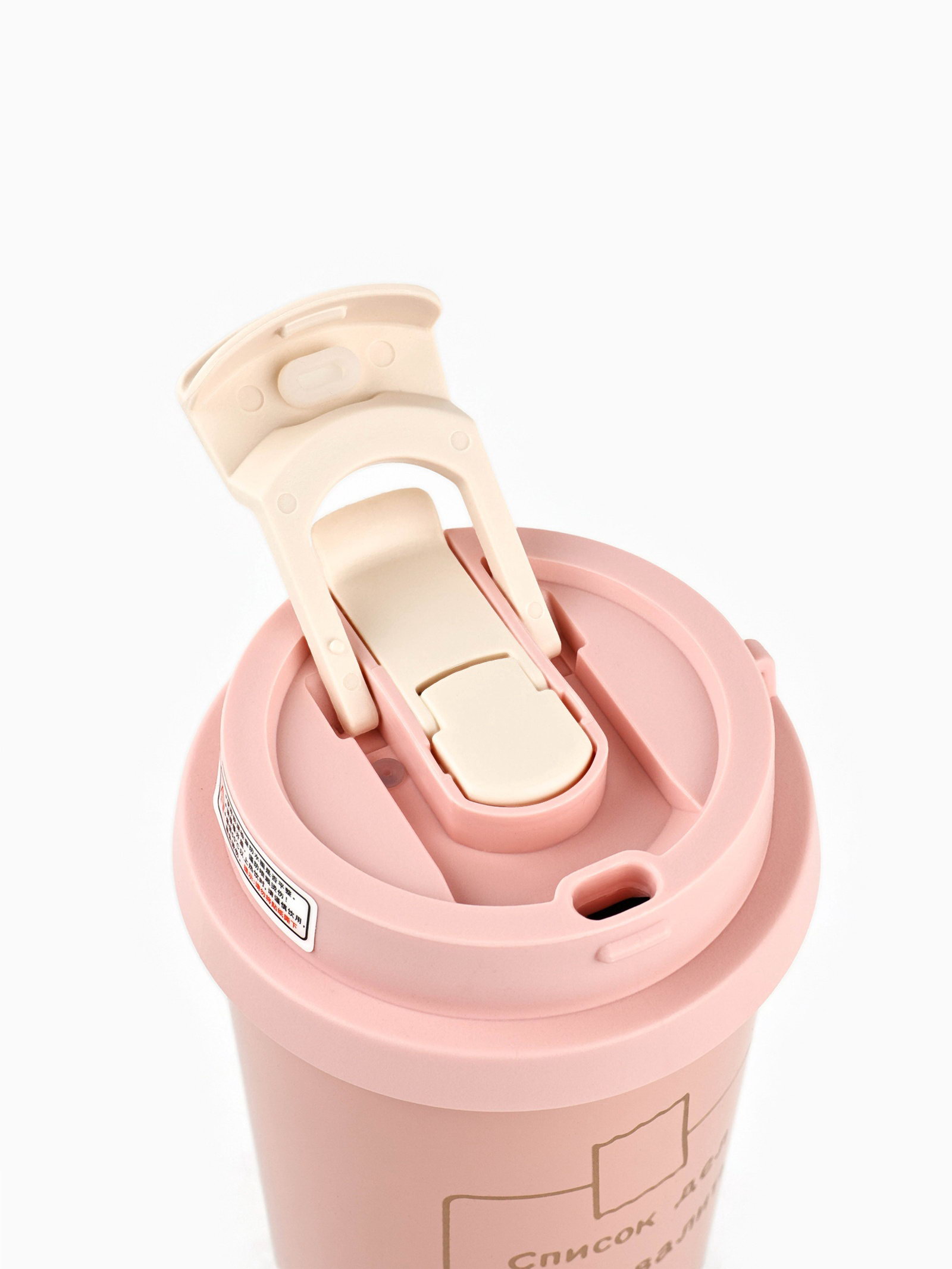Термокружка с веревочкой "Список дел", 500 мл, розовый, 6.5x6.5x19 см., Сима-ленд, Китай