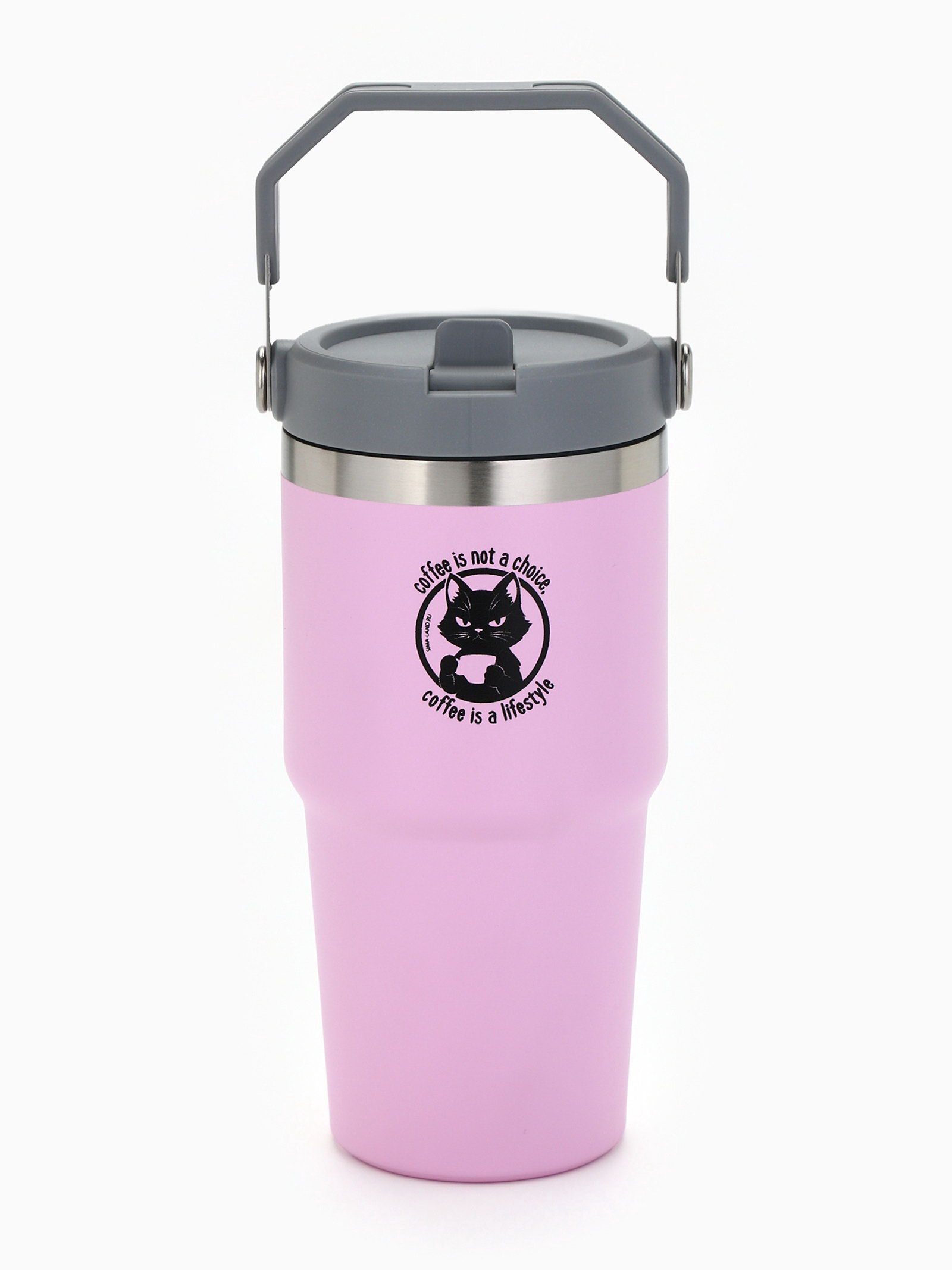 Термостакан с ручкой Coffee, 600 мл, розовый, 8.5x8.5x19 см., Сима-ленд, Китай