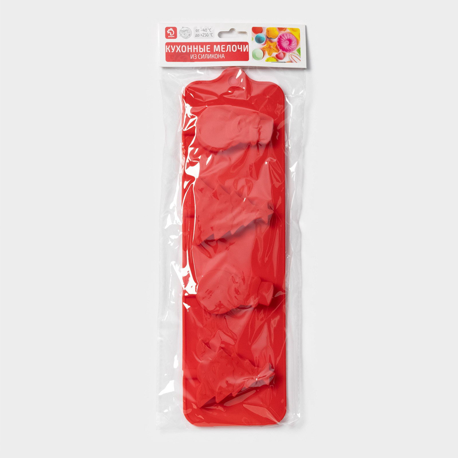 Форма для леденцов "Новый год", силикон, 31x9 см, 4 ячейки, с палочками, красная, 9x31x1 см., Доляна, Китай