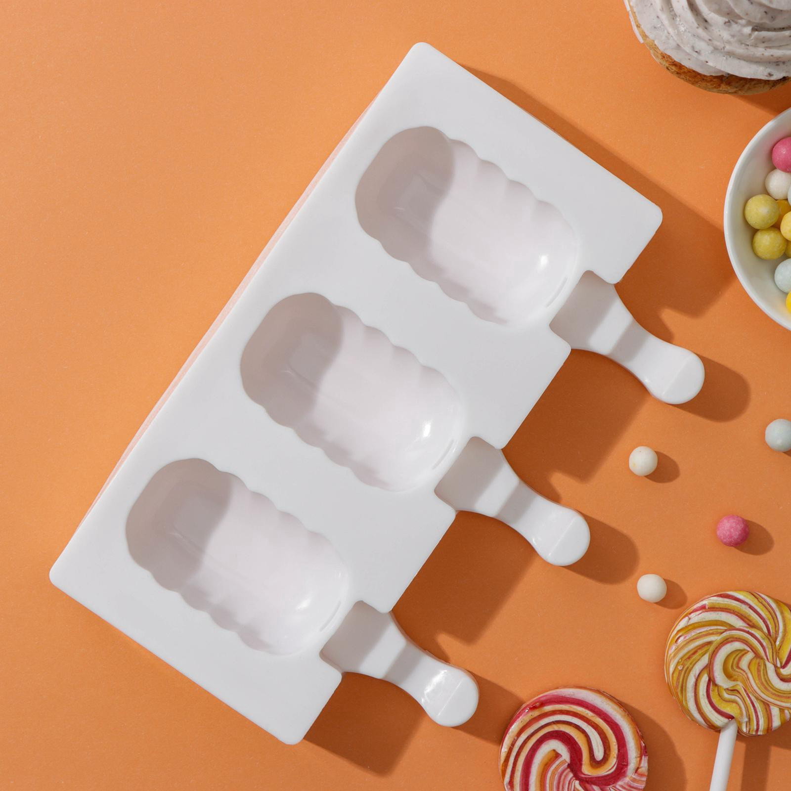 Форма для мороженого "Эскимо волна", силикон, 19.4x13 см, 3 ячейки, 13x19.4x2.4 см., Китай