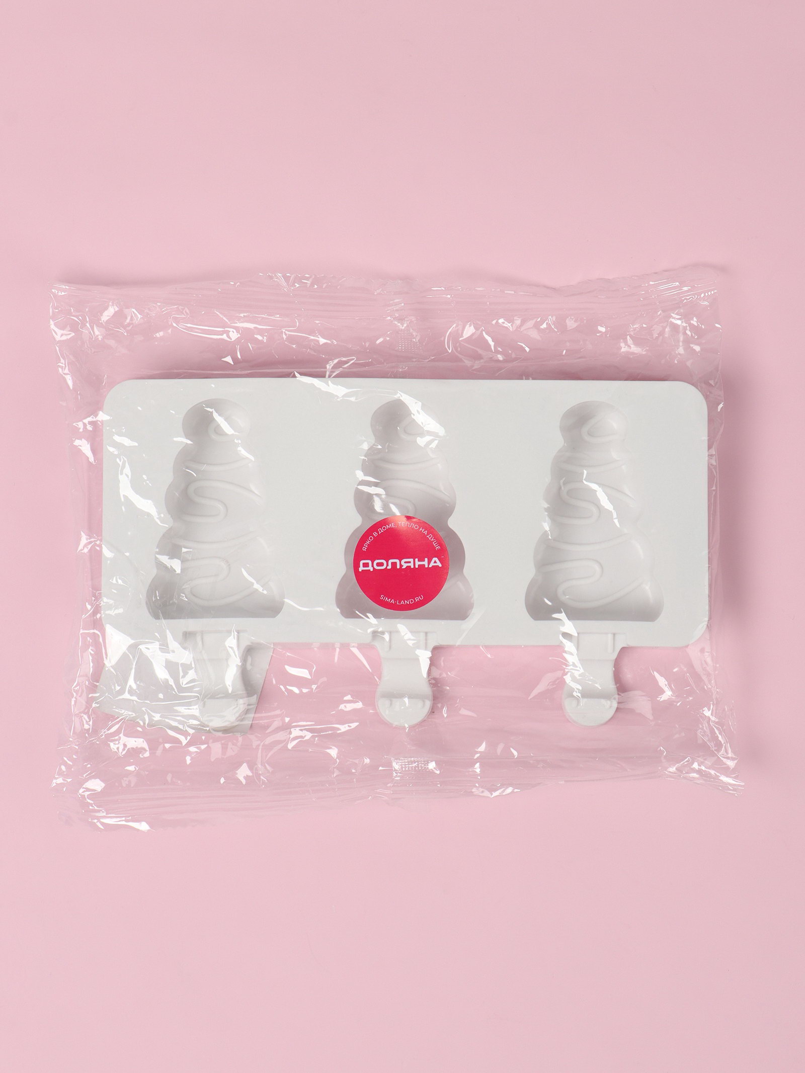 Форма для мороженого новогодняя "Ёлочка", силикон, 19.5x13x2.5 см, 3 ячейки, 11x19x2.5 см., Доляна, Китай