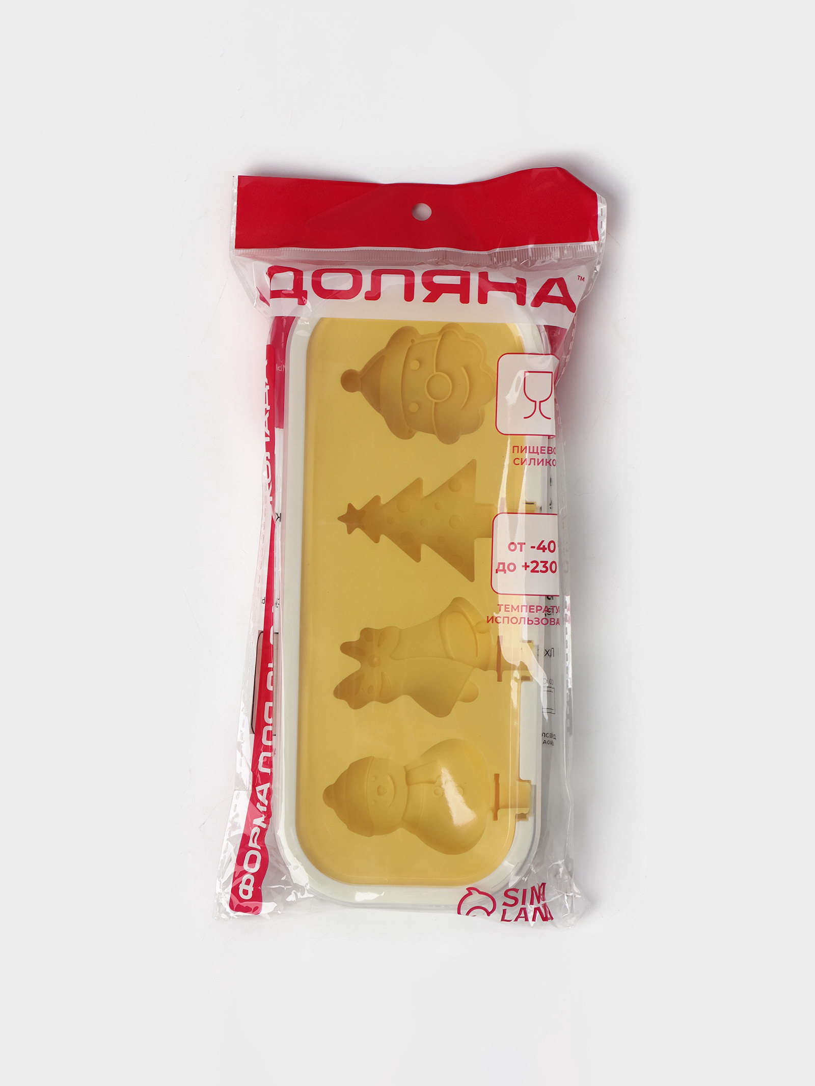 Форма для мороженого с крышкой "Новый год", силикон, 24x10x3 см, 4 ячейки, с палочками, жёлтая, 10x24x3 см., Доляна, Китай
