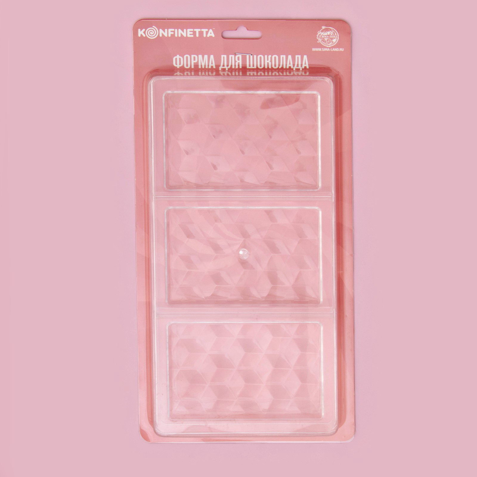 Форма для шоколада "Плитка шоколада", 33x16.5x2.5 см, 3 ячейки 7.5x11.3 см, прозрачная, 13.5x27.4x2.5 см., KONFINETTA, Китай