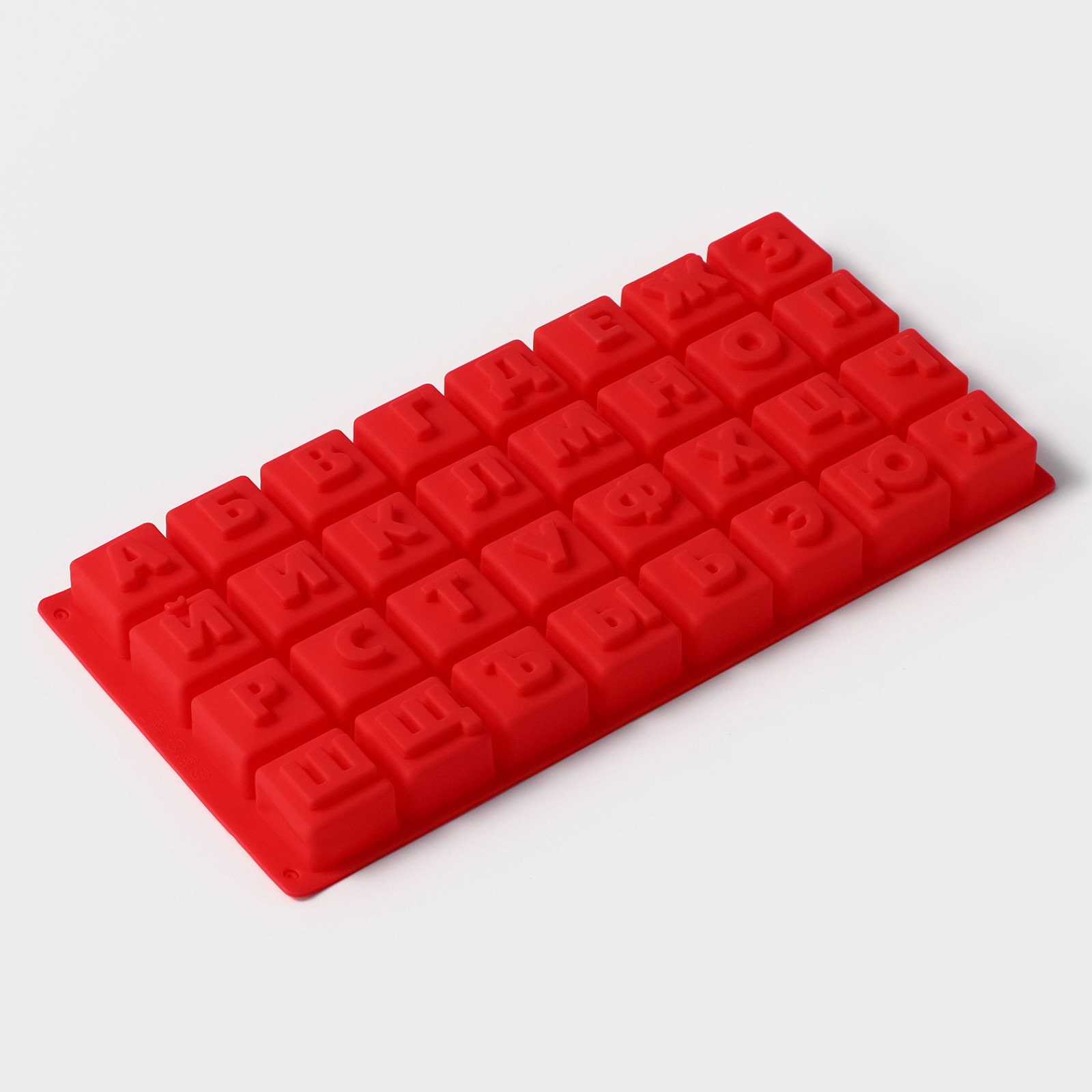 Форма для шоколада ""Алфавит для бенто-тортов", силикон, 35x18 см, 32 ячейки, 18x35.5x3 см., Доляна, Китай