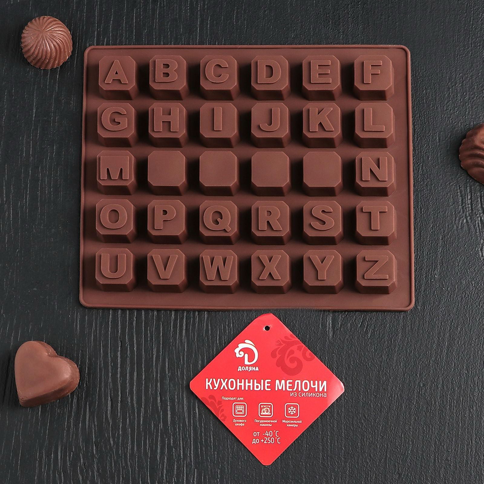 Форма для шоколада "Англ.алфавит", силикон, 18x15 см, 30 ячеек, 15x18x2 см., Доляна, Китай