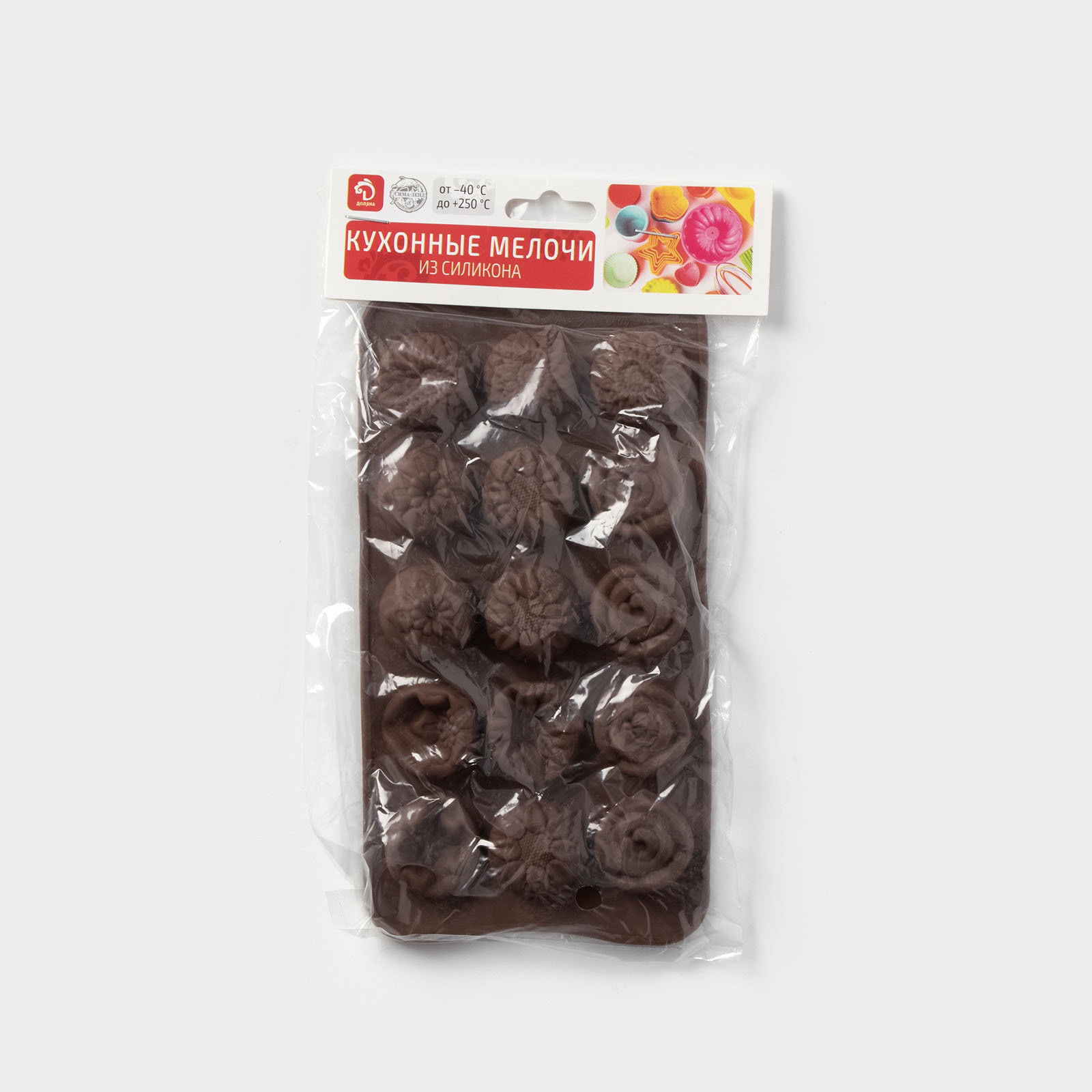 Форма для конфет и шоколада "Клумба цветов", силикон, 20.5x10.5x1.5 см, 15 ячеек, коричневая, 10.5x20.5x2 см., Доляна, Китай