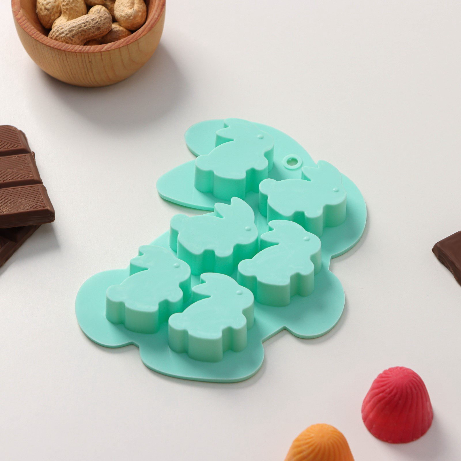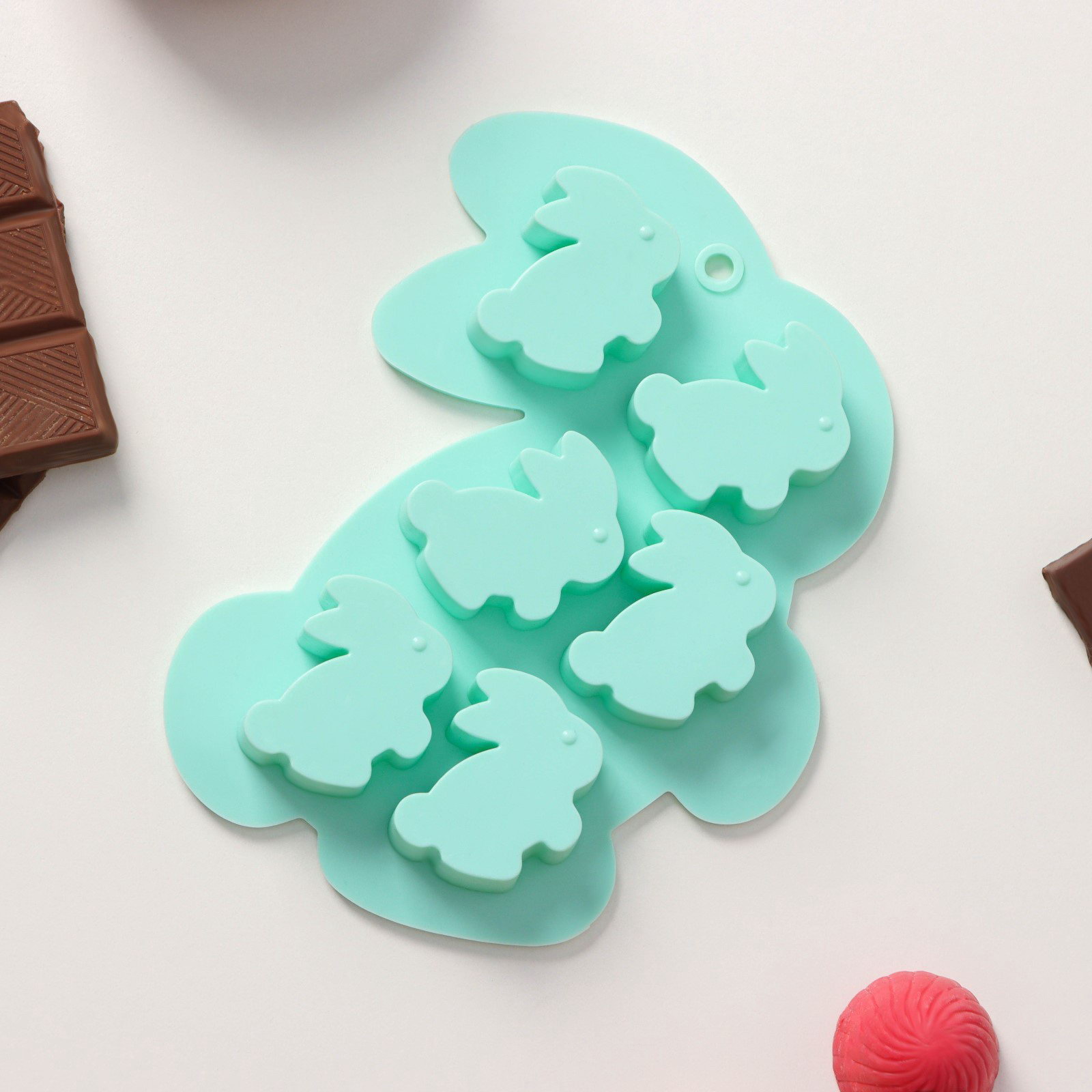 Форма для конфет и шоколада "Заяц", силикон, 15x11.5 см, 6 ячеек, 11.5x15x2 см., Доляна, Китай