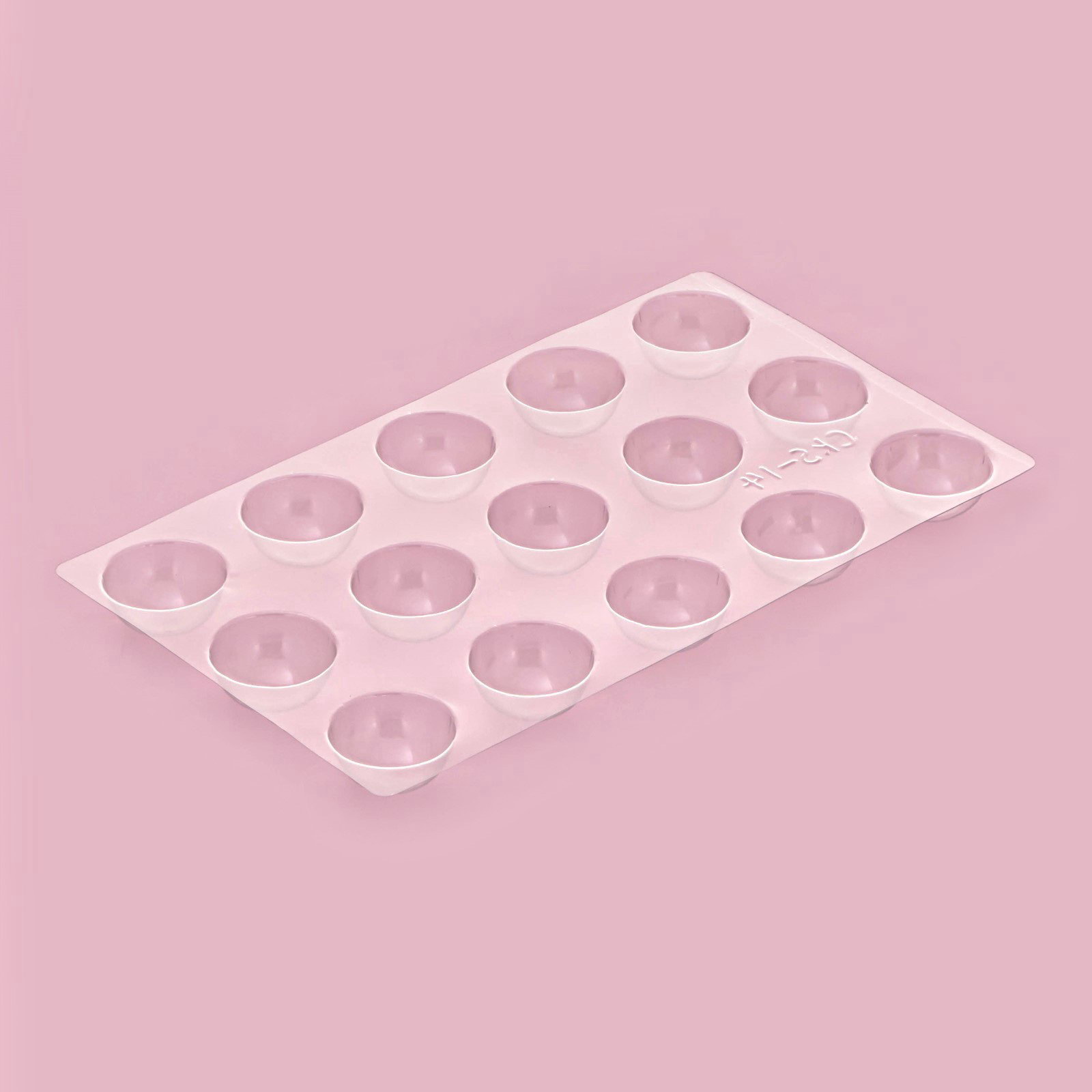 Форма для шоколада и конфет "Полусфера", 22x13 см, 15 ячеек, d=3 см, прозрачная, 13x22x1.5 см., Китай