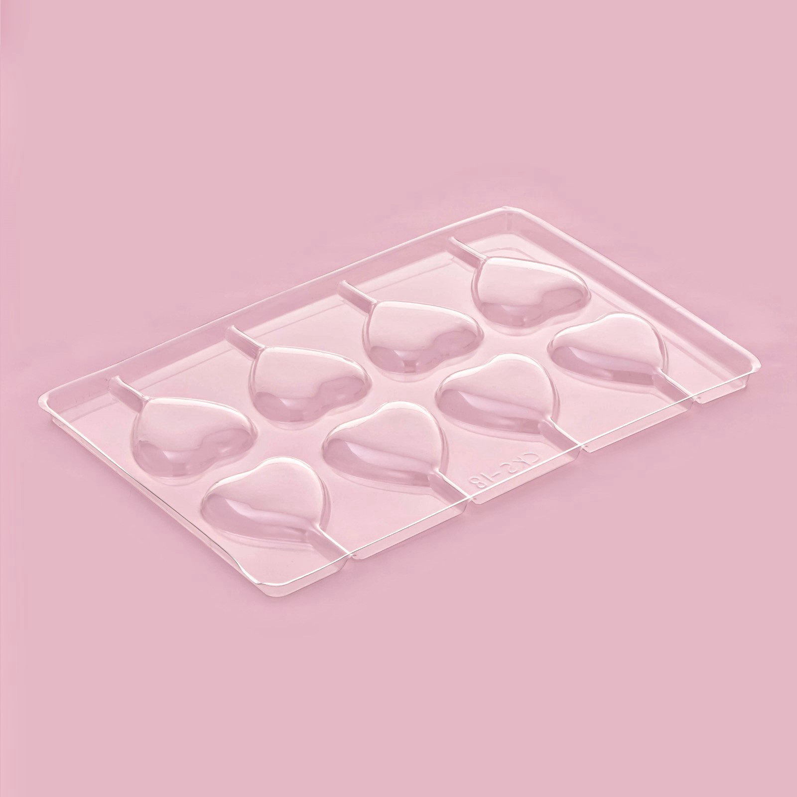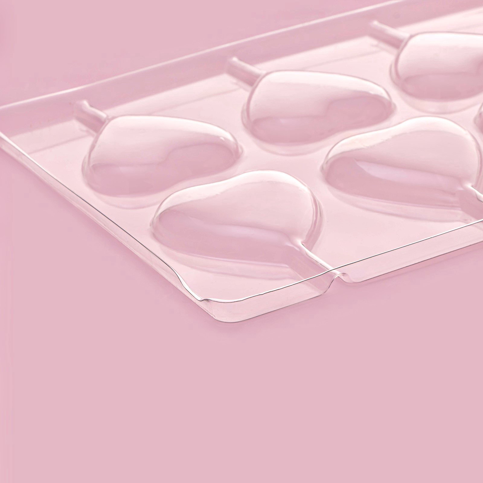 Форма для шоколада и конфет "Сердце", 27.2x18.2 см, 8 ячеек, прозрачная, 18.2x27.2x1 см., Китай