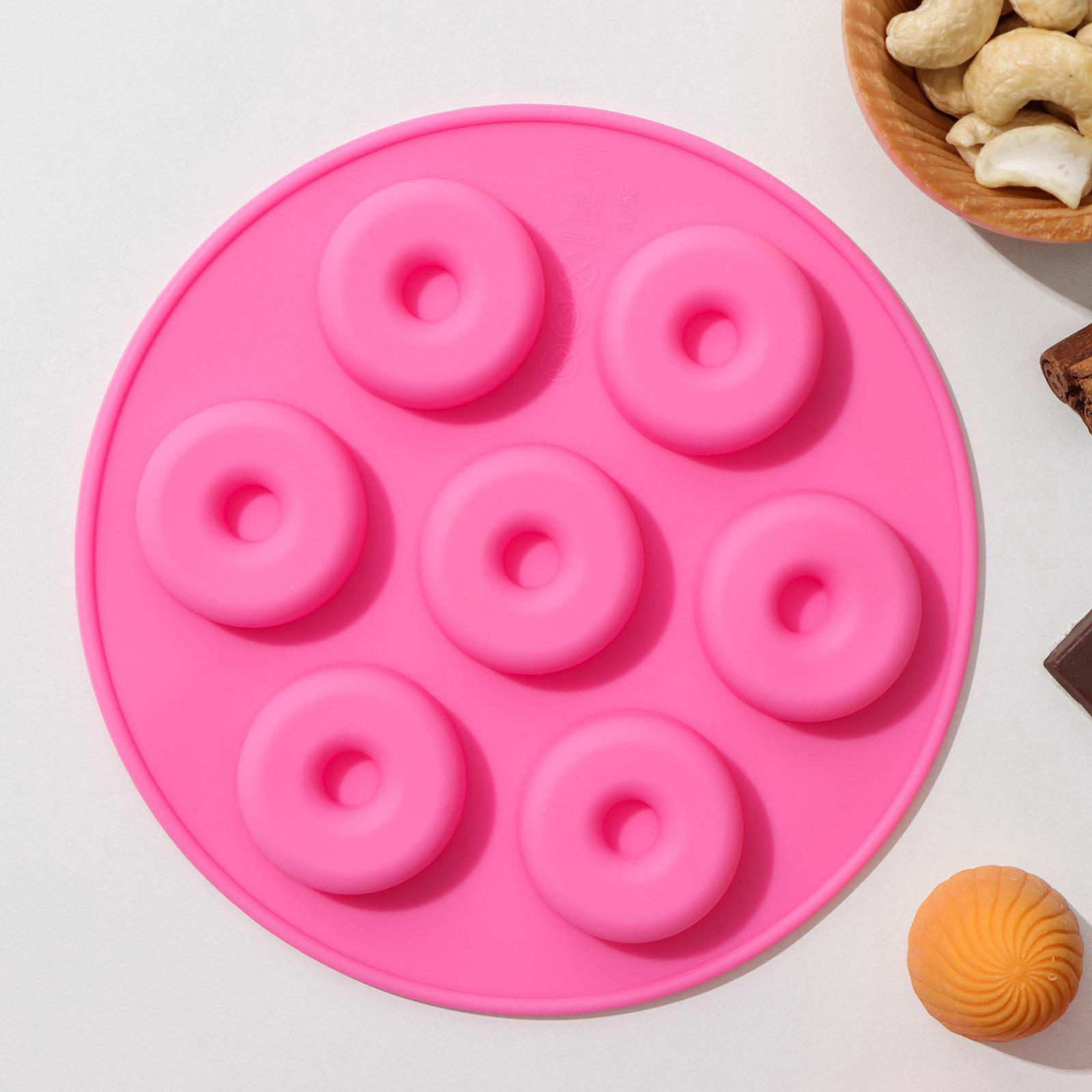 Форма для шоколада "Пончики", силикон, 15.5x1.3 см, 7 ячеек, МИКС, 15.5x15.5x1.3 см., Доляна, Китай