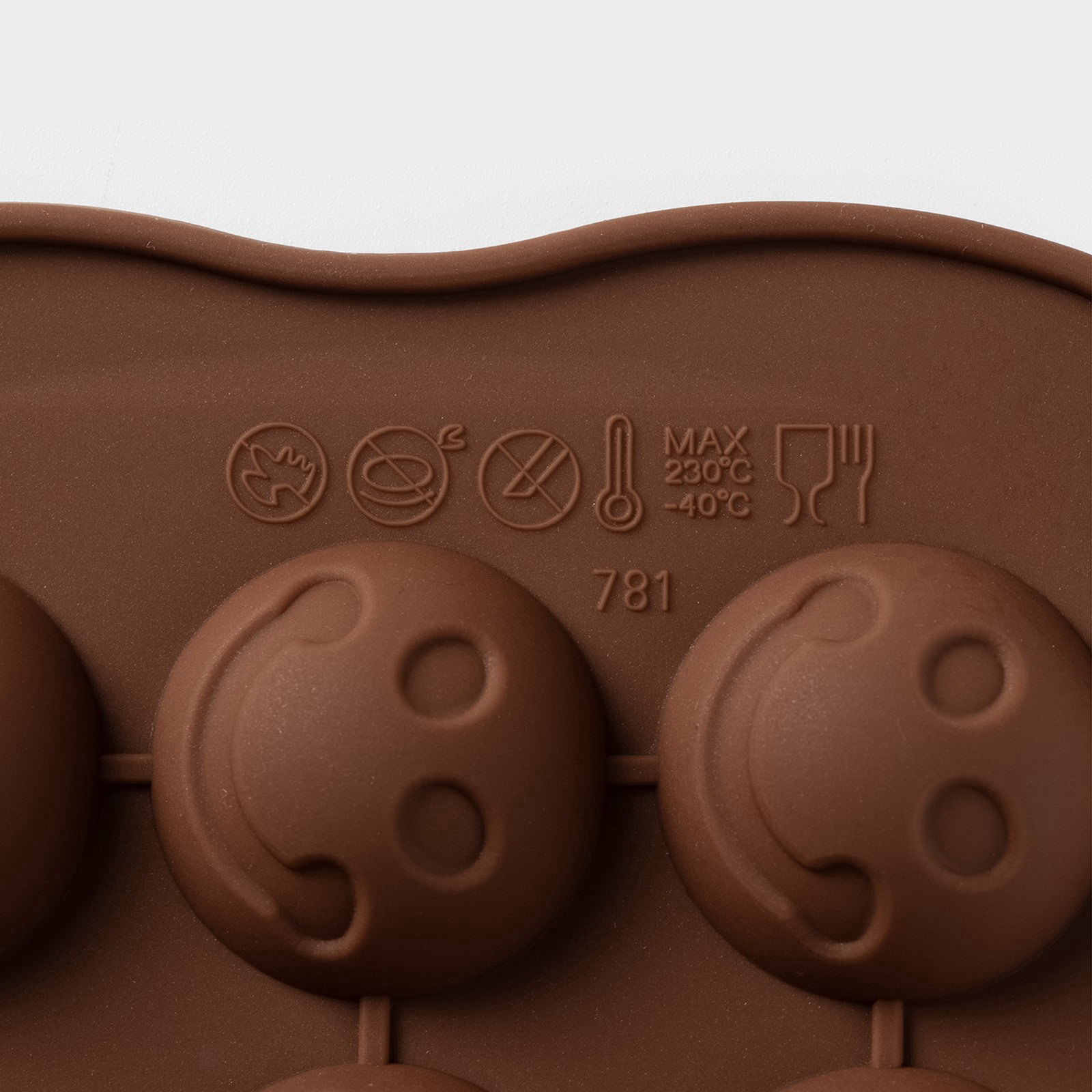 Форма для конфет и шоколада "Шарик смайл", силикон, 20x10 см, 15 ячеек, коричневая, 11x21x2 см., Доляна, Китай