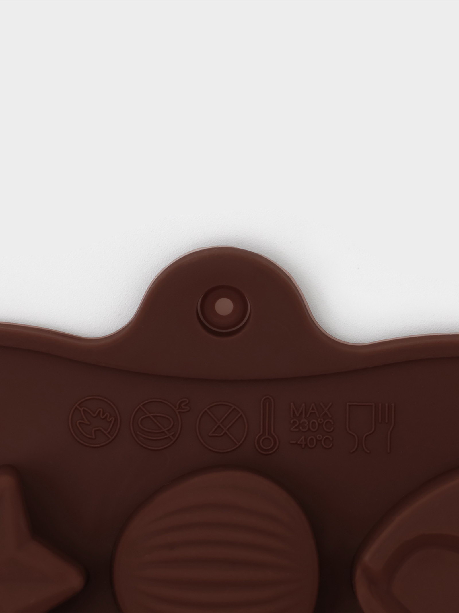 Форма для конфет и шоколада "Звёзды, ракушки, сердца", силикон, 20.6x10.3 см, 15 ячеек, коричневая, 10.3x20.6x1 см., Доляна, Китай