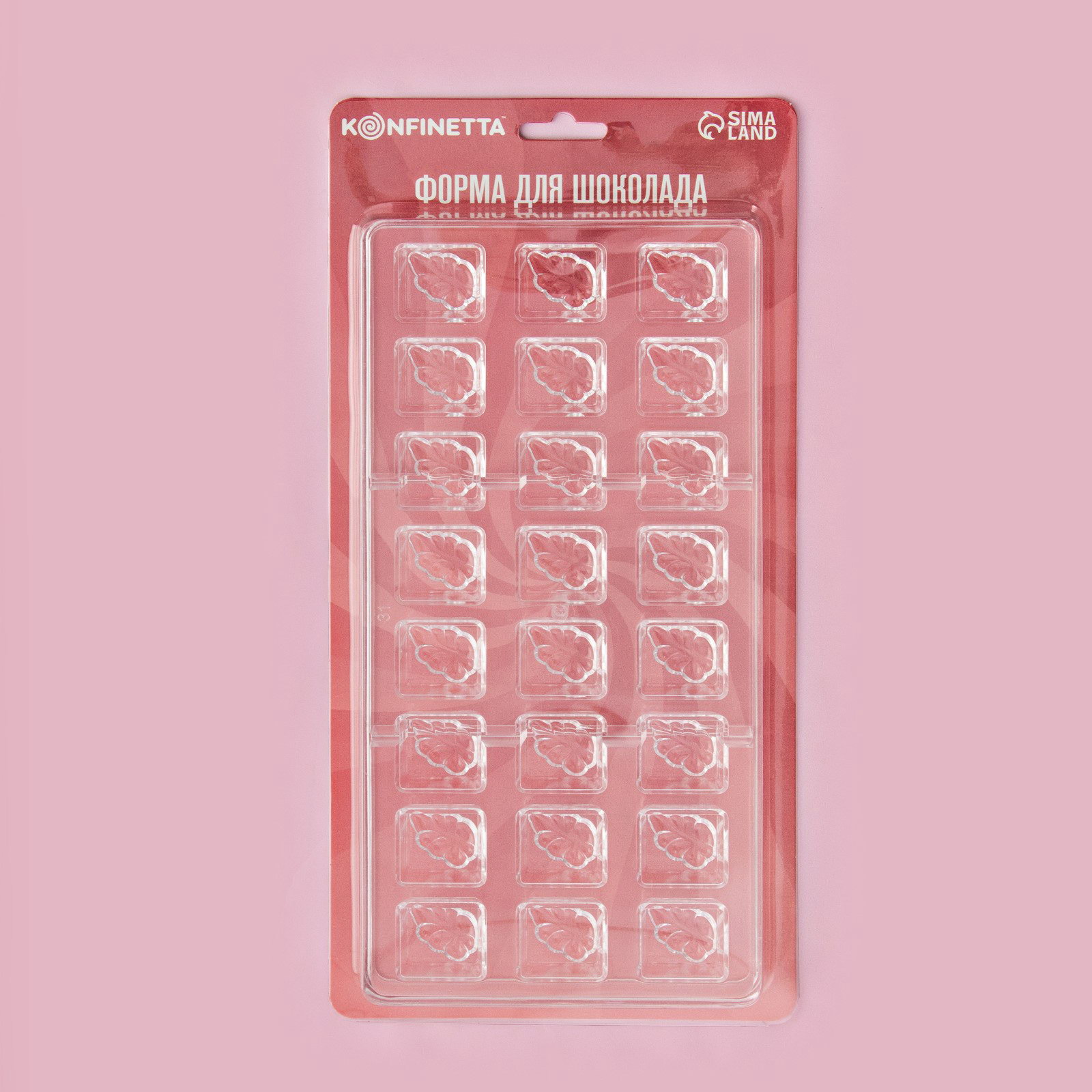 Форма для конфет и шоколада "Ягодный лист", 27.5x17.5x2.5 см, 24 ячейки 2.7x2.5x1.2 см, прозрачная, 13.5x27.5x2.5 см., KONFINETTA, Китай