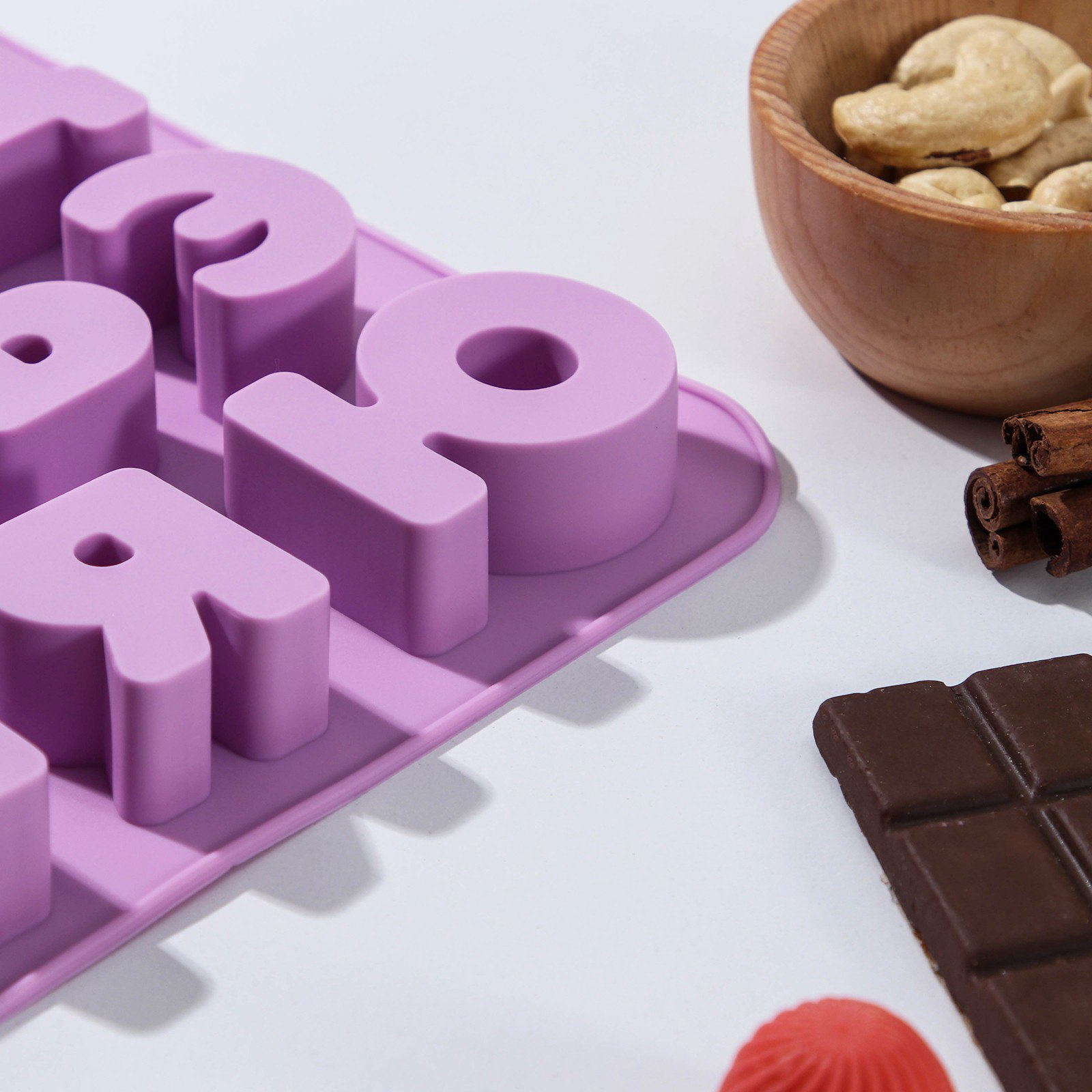 Форма для шоколада "Алфавит для бенто-тортов", силикон, 36.6x26.6x2 см, 33 ячейки, 26.6x36.6x2 см., Доляна, Китай