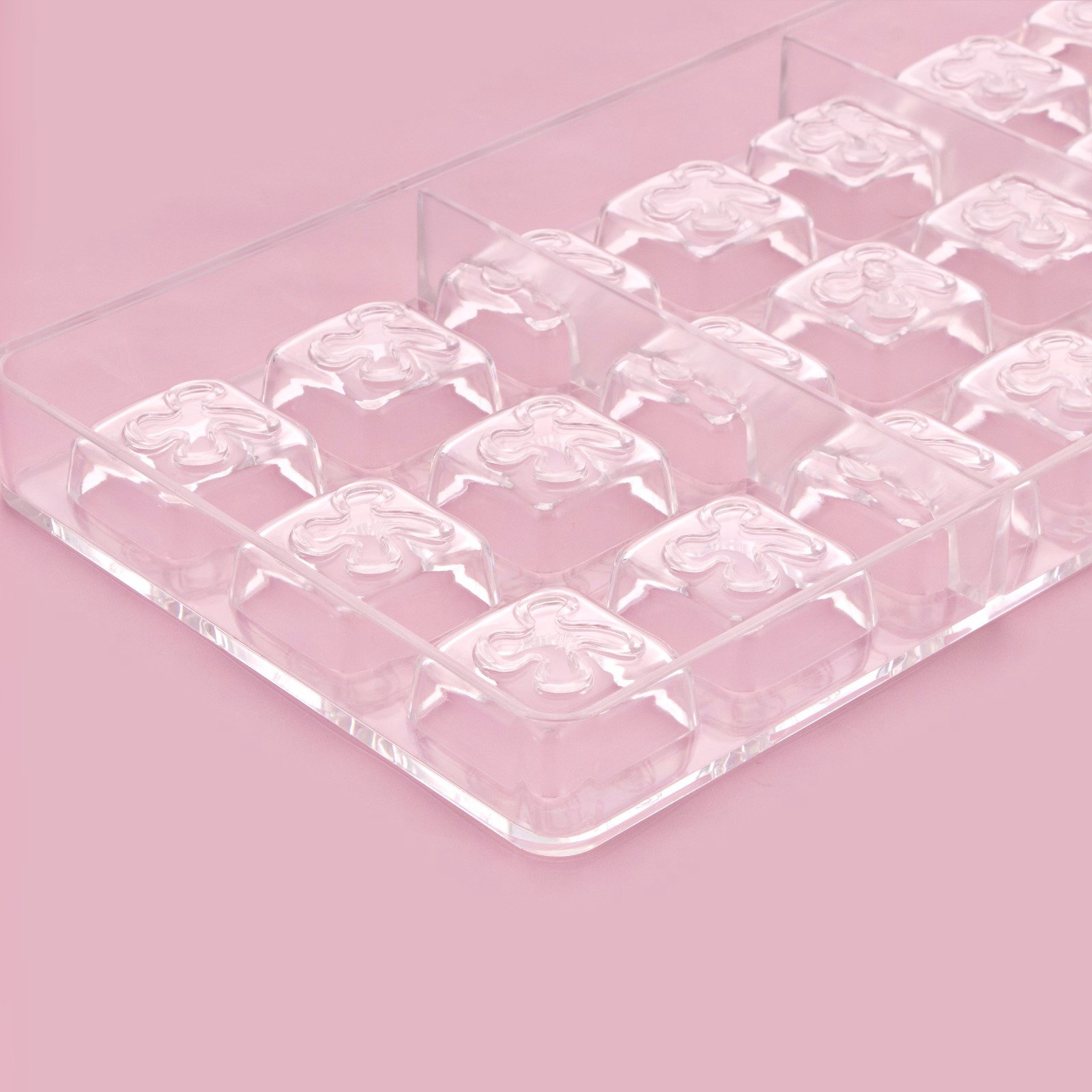 Форма для конфет и шоколада "Клевер", 27.5x17.5x2.5 см, 21 ячейка 2.5x2.5x1 см, прозрачная, 13.5x27.5x2.5 см., KONFINETTA, Китай