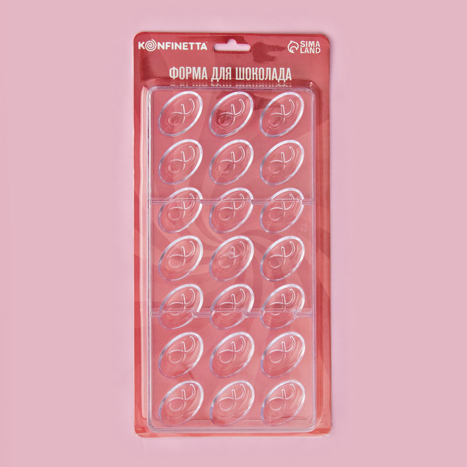 Форма для конфет и шоколада "Бесконечность", 27.5x17.5x2.5 см, 21 ячейка 3.5x2x1.2 см, прозрачная, 13.5x27.5x2.5 см., KONFINETTA, Китай