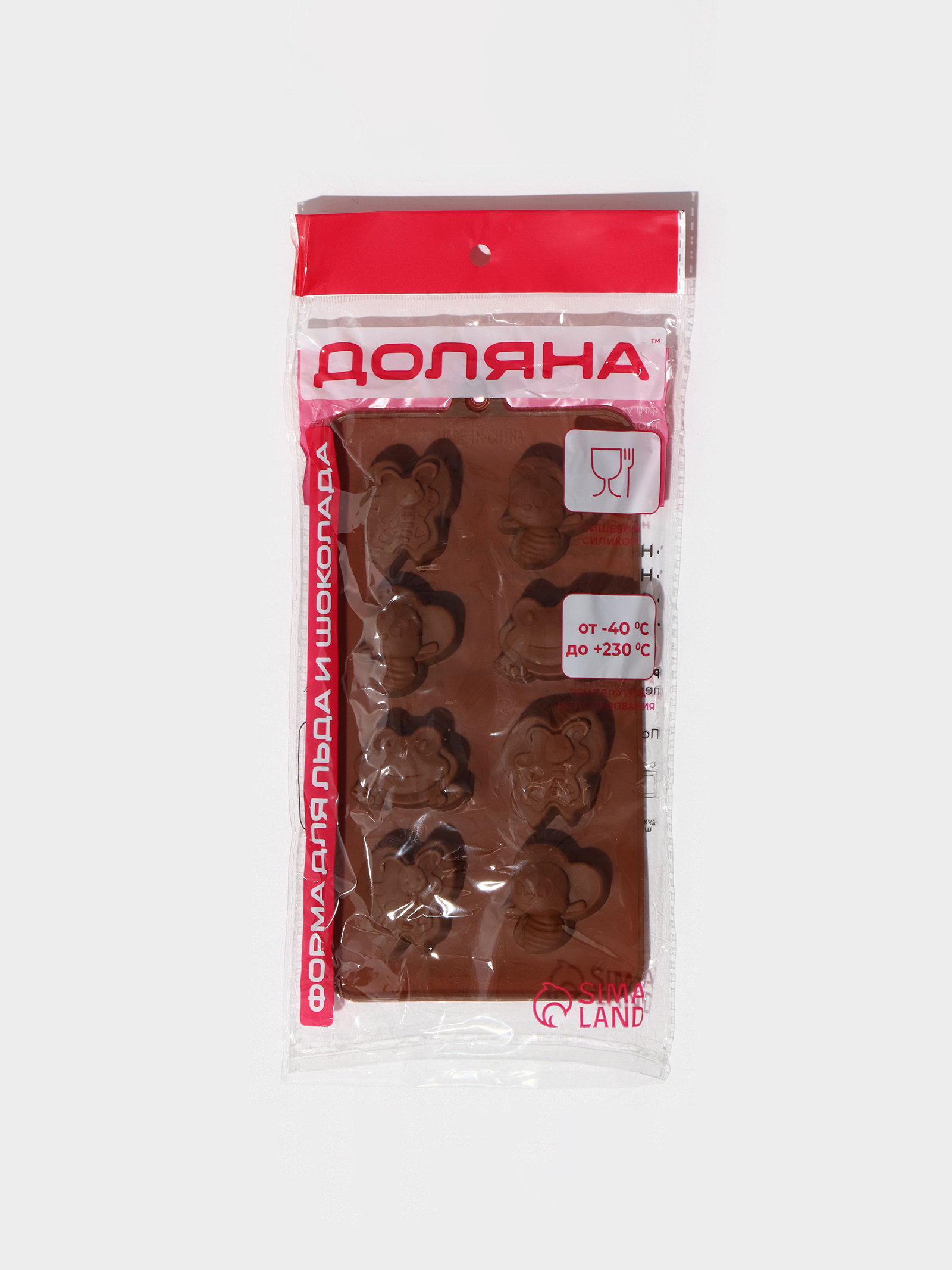Форма для шоколада "Насекомые", силикон, 22x11.5x2 см, 8 ячеек, коричневая, 11.5x22x2 см., Доляна, Китай