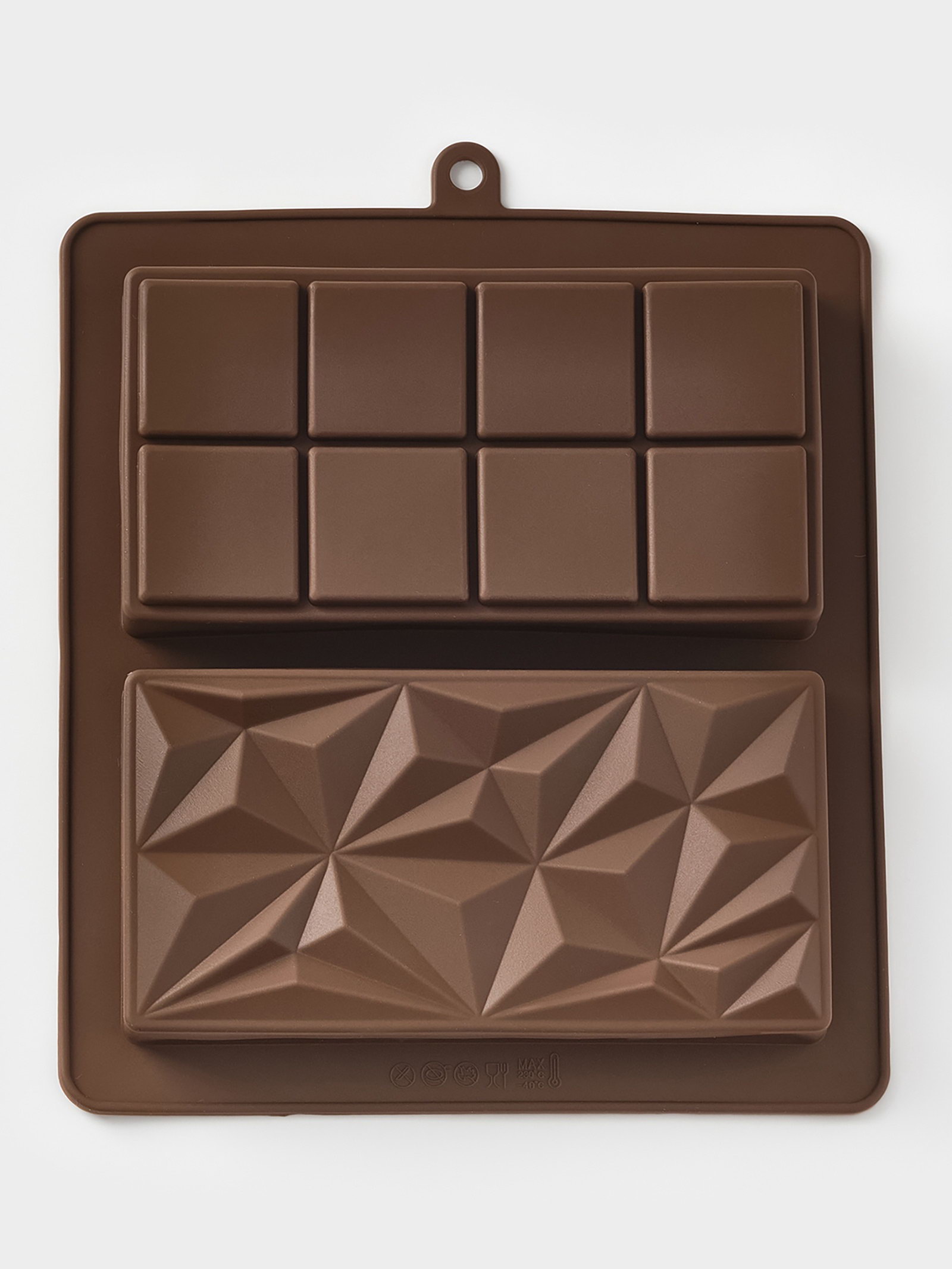 Форма для дубайского шоколада "Квадраты, пирамиды", 2 плитки, 21x19x2.5 см, силикон, коричневая, 19x21x2.5 см., Доляна, Китай
