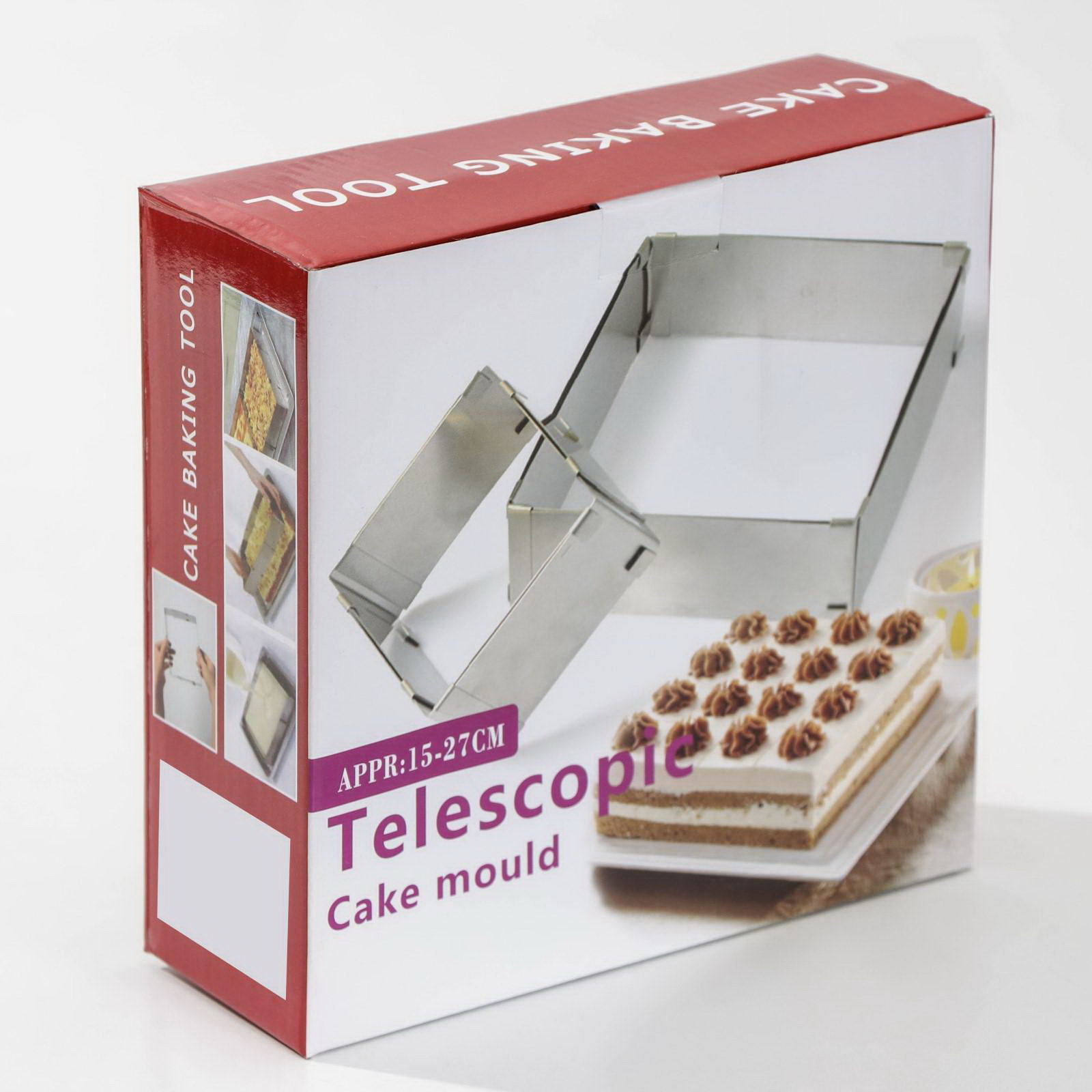 Форма для выкладки и выпечки с регулировкой размера, 15.5x28 см, h=5 см, серебристая, 16x16x5 см., Доляна, Китай
