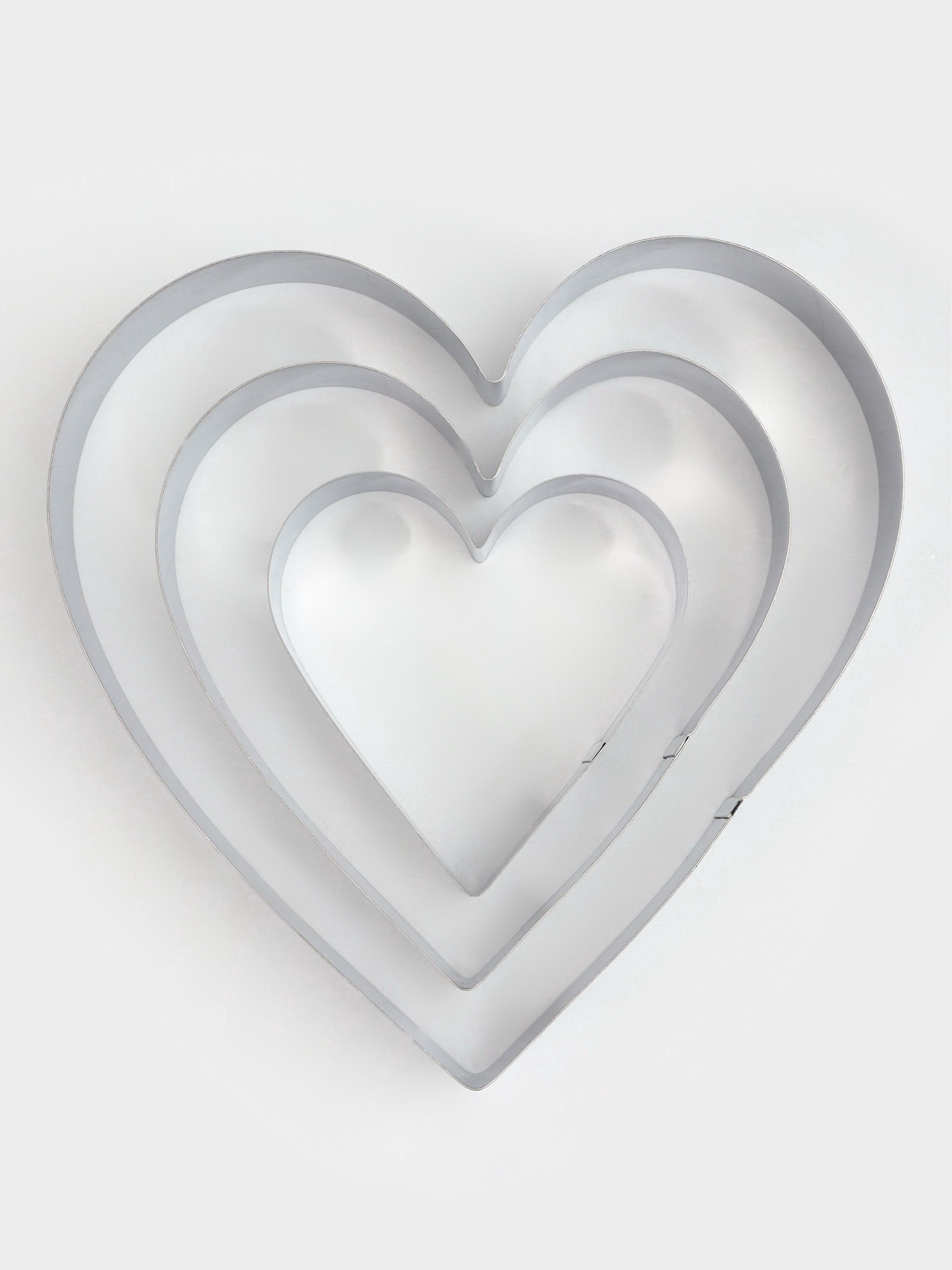 Набор форм для выкладки и выпечки "Сердце", 3 шт., 20x20x4.5 см, 15.5x15x4.5 см, 10x10x4.5 см, серебристый, 20x20x4.5 см., KONFINETTA, Китай