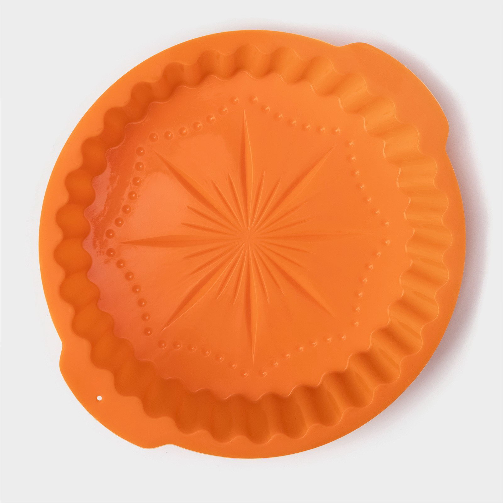 Форма для выпечки "Рифлёный круг. Звезда", силикон, d=20 см, с ручками, цвет оранжевый, 20х20х2 см., Доляна, Китай